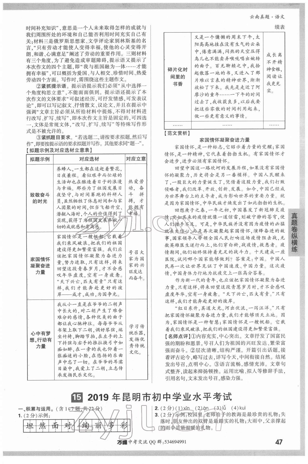 2022年万唯中考真题语文云南专版