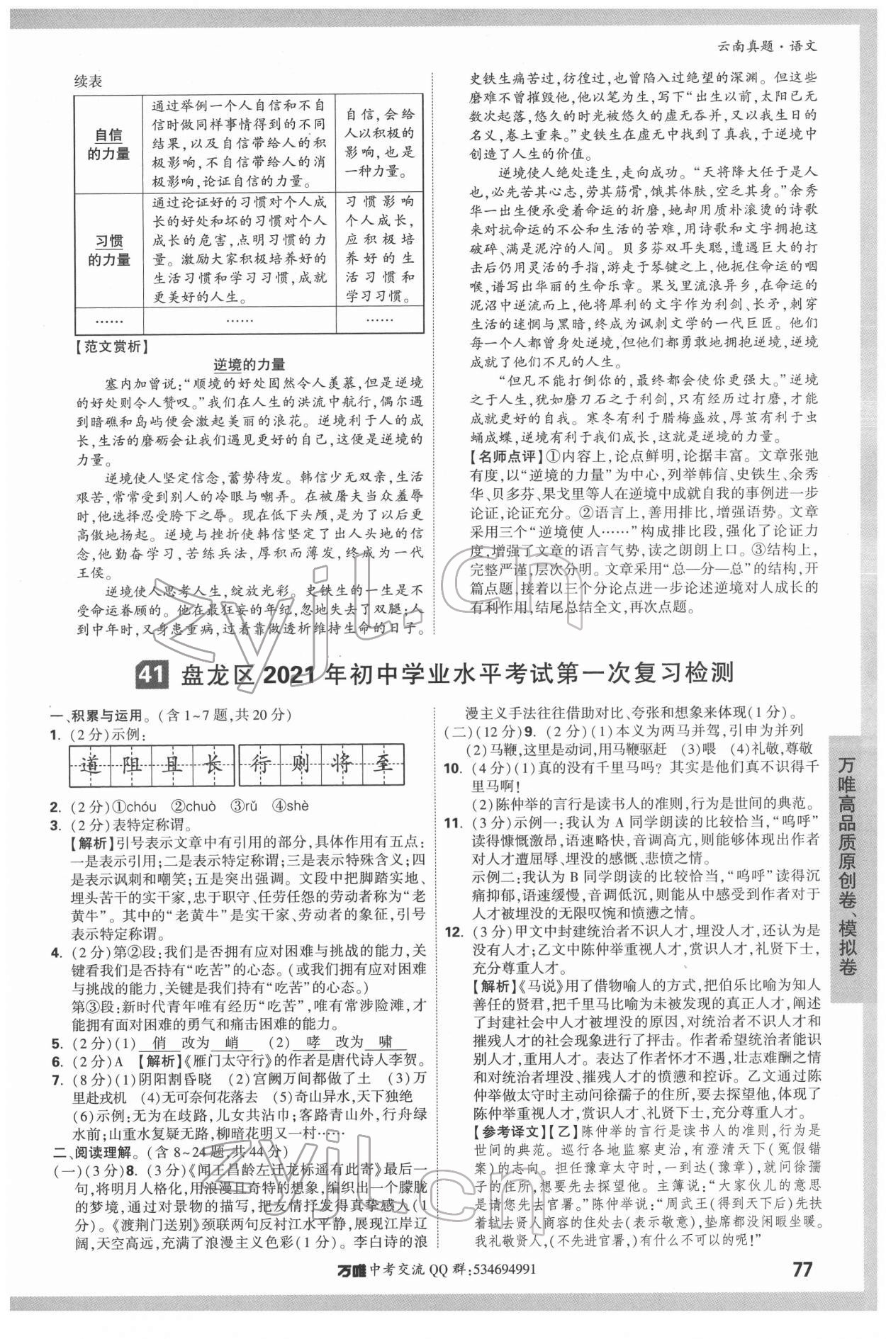 2022年万唯中考真题语文云南专版