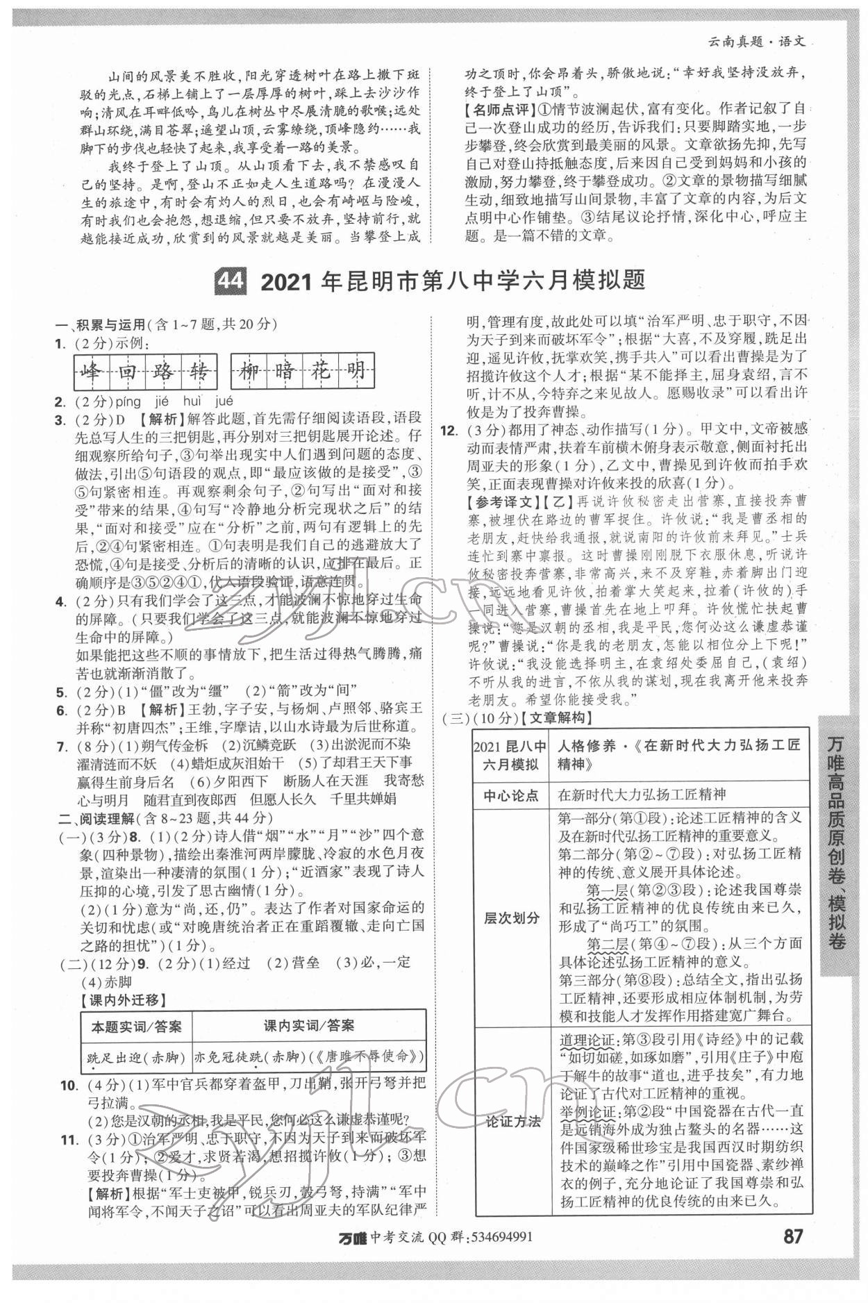 注:目前有些书本章节名称可能整理的还不是很完善,但都是按照顺序排列的,请同学们按照顺序仔细查找。练习册 2022年万唯中考真题语文云南专版 答案主要是用来给同学们做完题方便对答案用的,请勿直接抄袭。