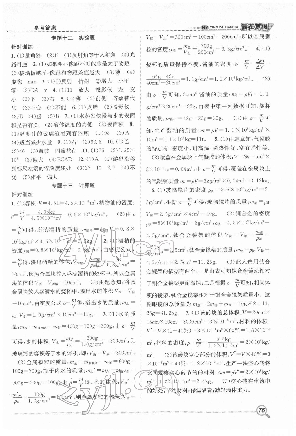 2022年赢在寒假衔接教材八年级物理沪粤版