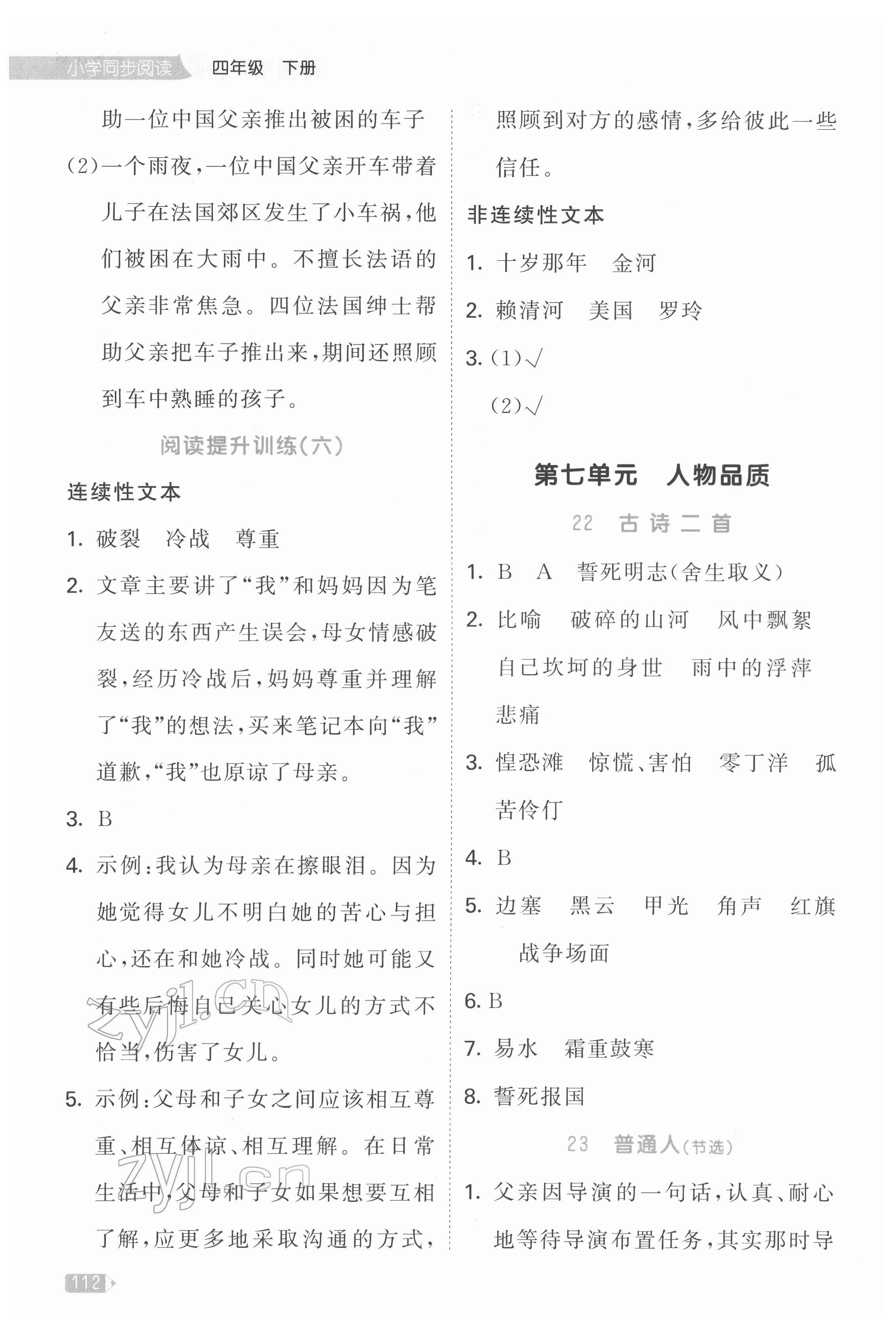 注:目前有些书本章节名称可能整理的还不是很完善,但都是按照顺序排列的,请同学们按照顺序仔细查找。练习册 2022年53天天练四年级语文下册人教版同步阅读 答案主要是用来给同学们做完题方便对答案用的,请勿直接抄袭。