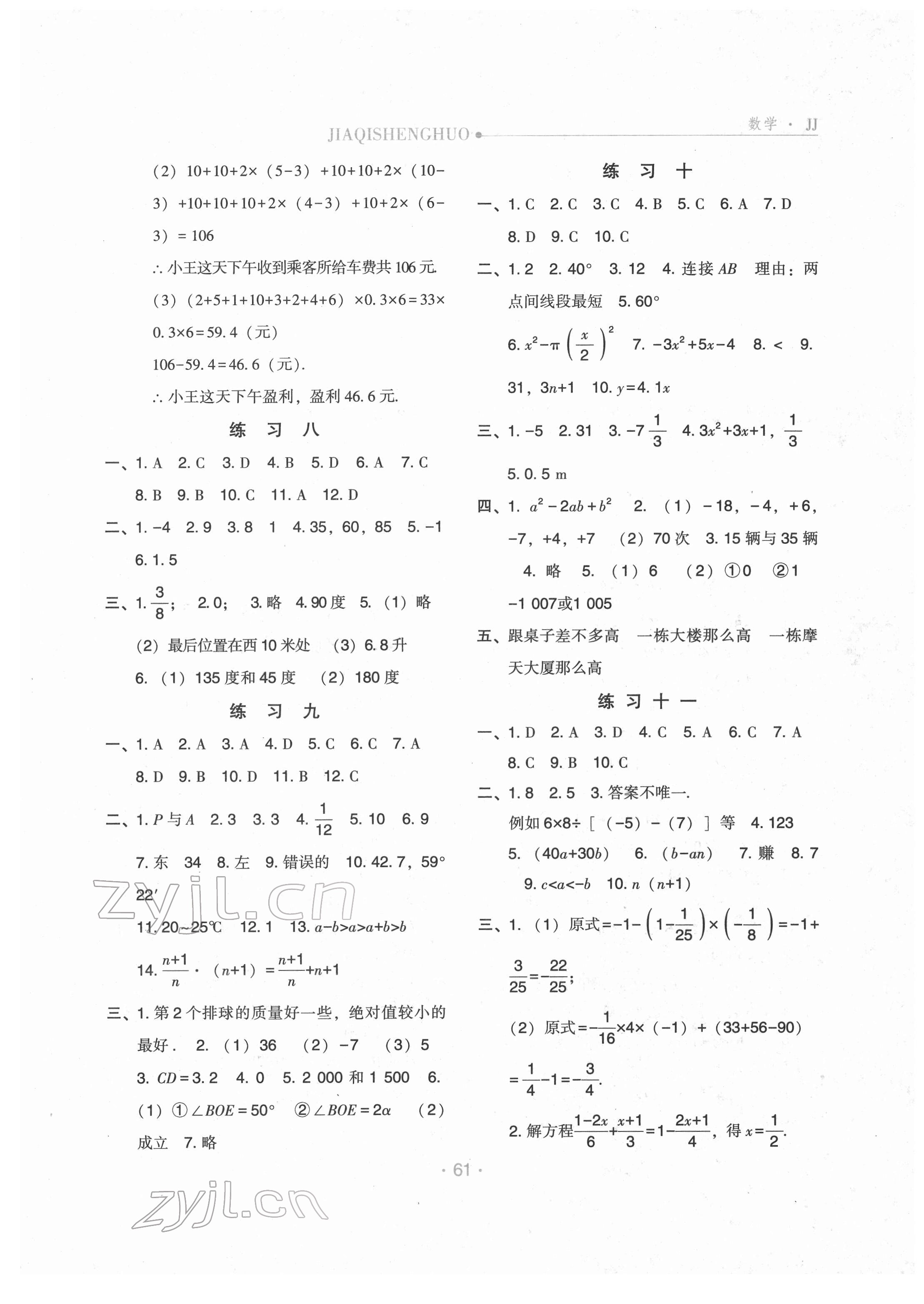 注:目前有些书本章节名称可能整理的还不是很完善,但都是按照顺序排列的,请同学们按照顺序仔细查找。练习册 2022年假期生活七年级数学冀教版方圆电子音像出版社 答案主要是用来给同学们做完题方便对答案用的,请勿直接抄袭。
