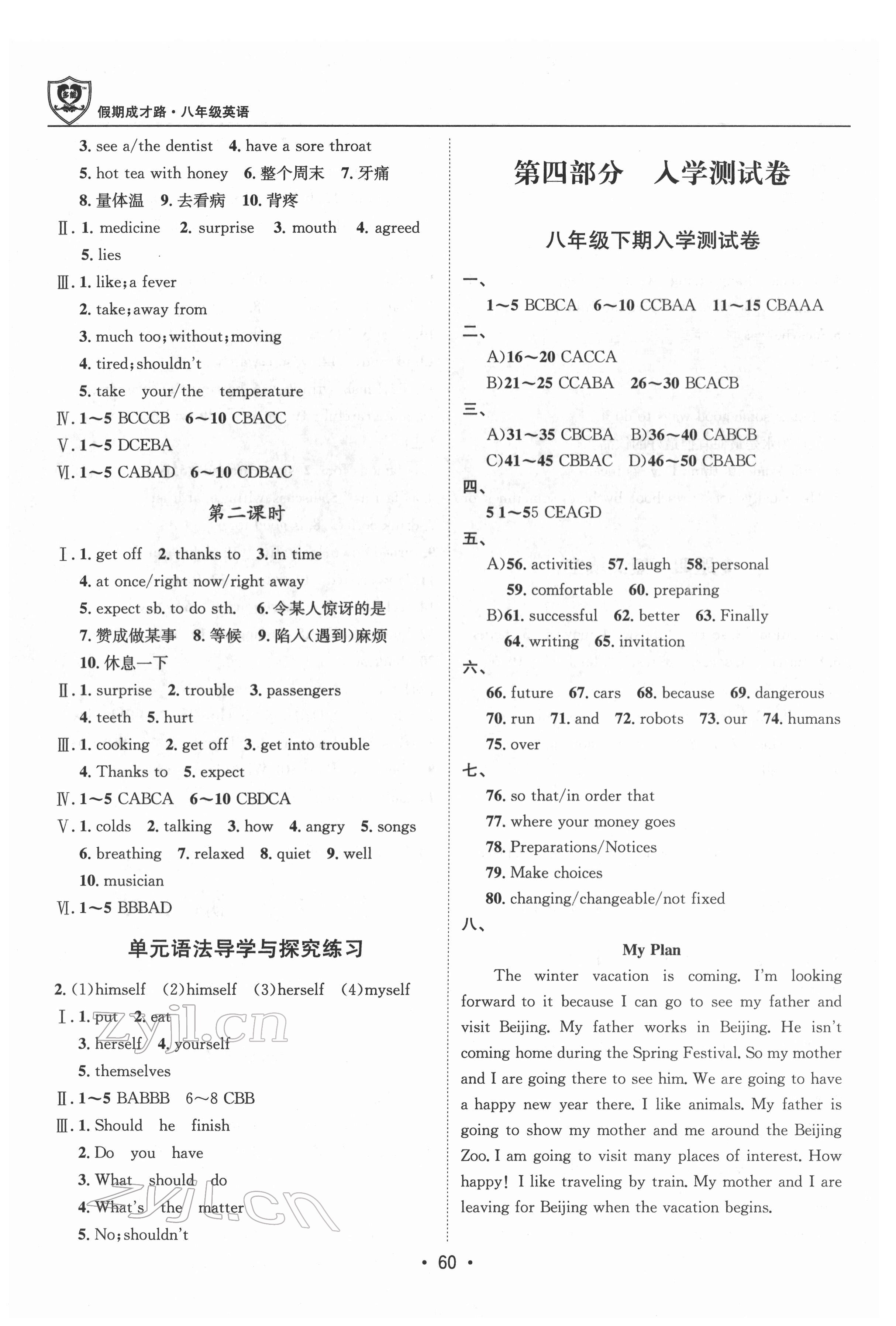 注:目前有些书本章节名称可能整理的还不是很完善,但都是按照顺序排列的,请同学们按照顺序仔细查找。练习册 2022年假期成才路八年级英语 答案主要是用来给同学们做完题方便对答案用的,请勿直接抄袭。