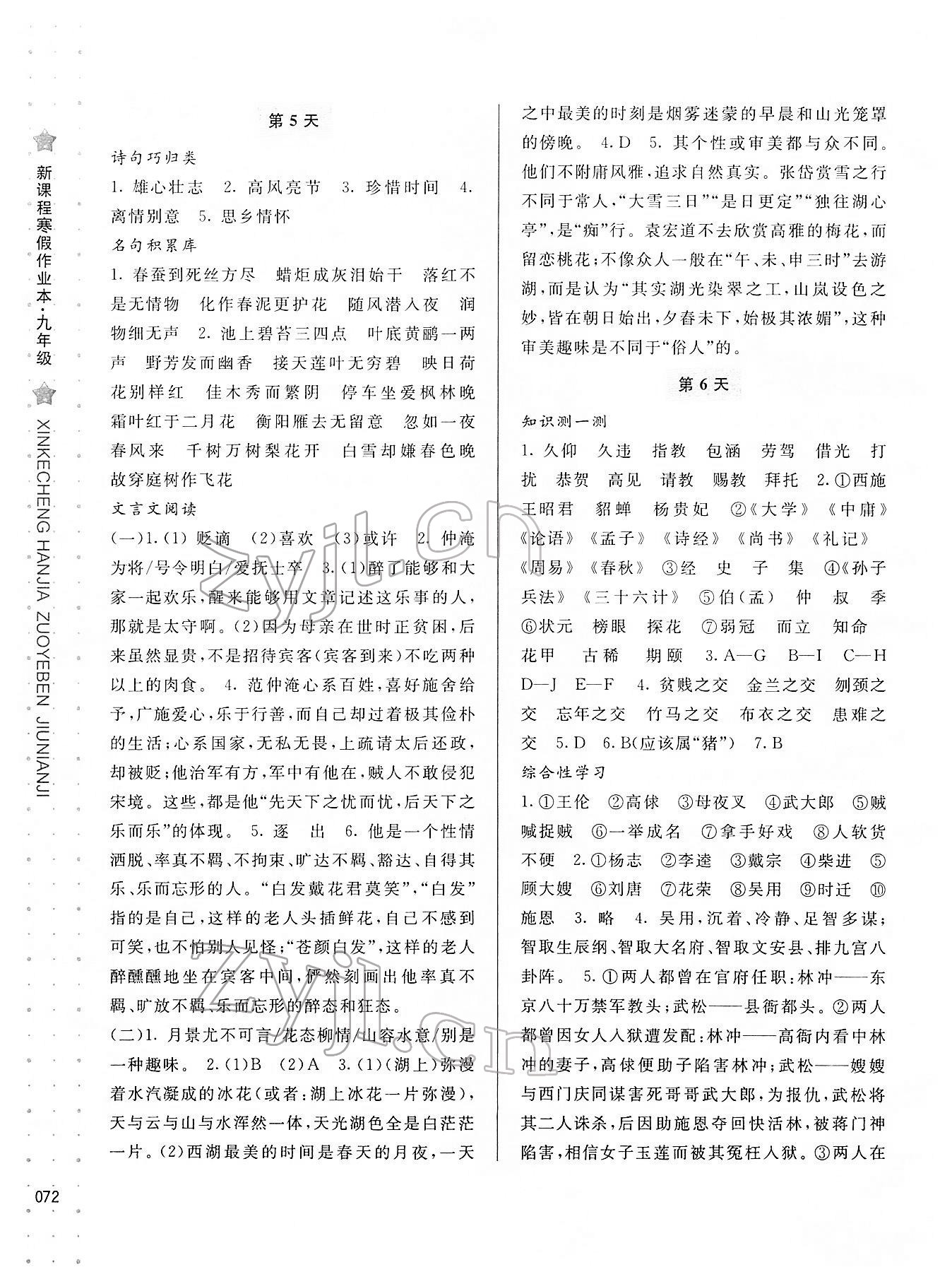 注:目前有些书本章节名称可能整理的还不是很完善,但都是按照顺序排列的,请同学们按照顺序仔细查找。练习册 2022年新课程寒假作业本九年级宁波出版社 答案主要是用来给同学们做完题方便对答案用的,请勿直接抄袭。