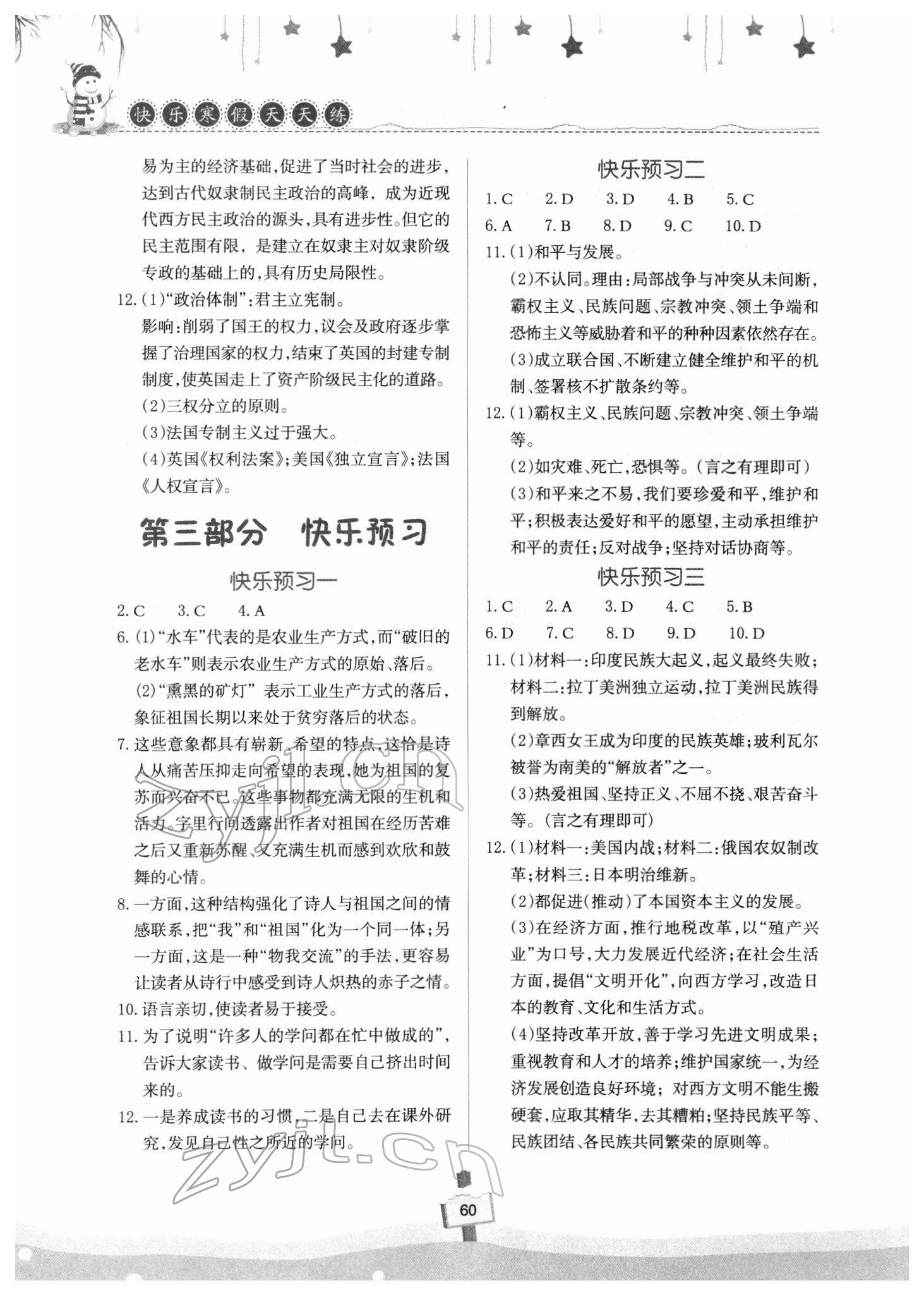 2022年快乐寒假天天练九年级语文道德与法治历史