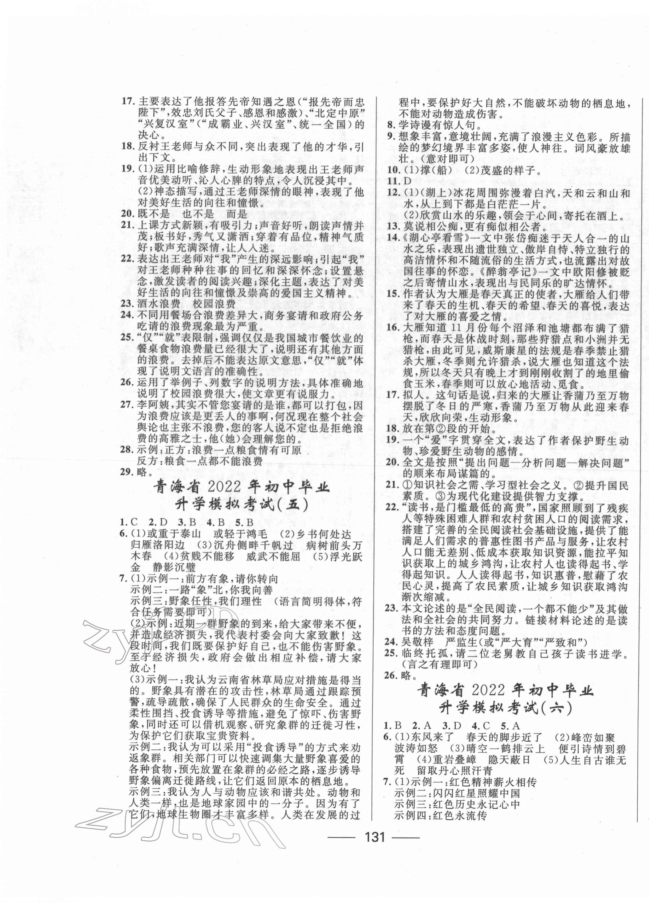 注:目前有些书本章节名称可能整理的还不是很完善,但都是按照顺序排列的,请同学们按照顺序仔细查找。练习册 2022年青海中考冲刺模拟试卷语文 答案主要是用来给同学们做完题方便对答案用的,请勿直接抄袭。