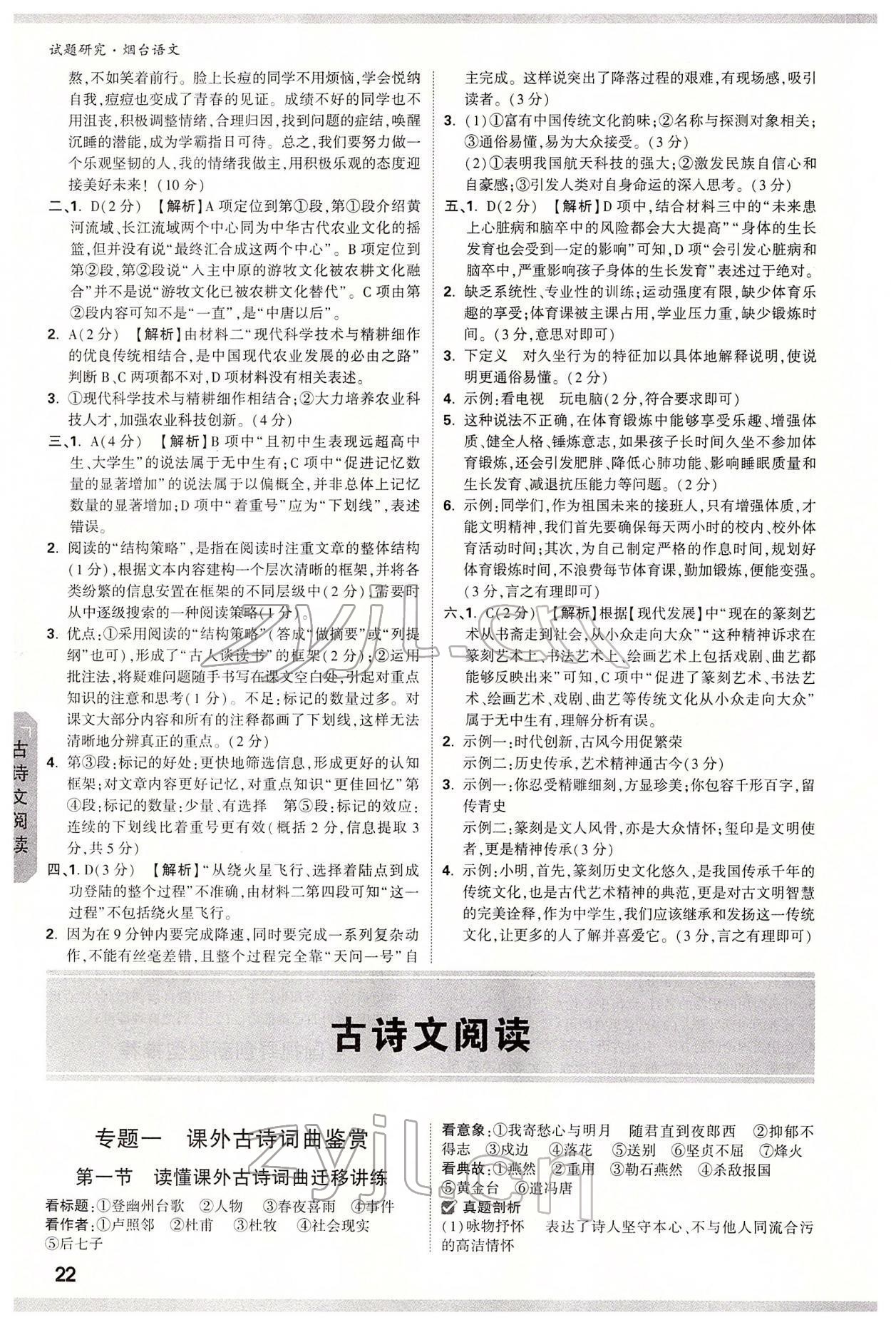 2022年万唯中考试题研究语文中考烟台专版