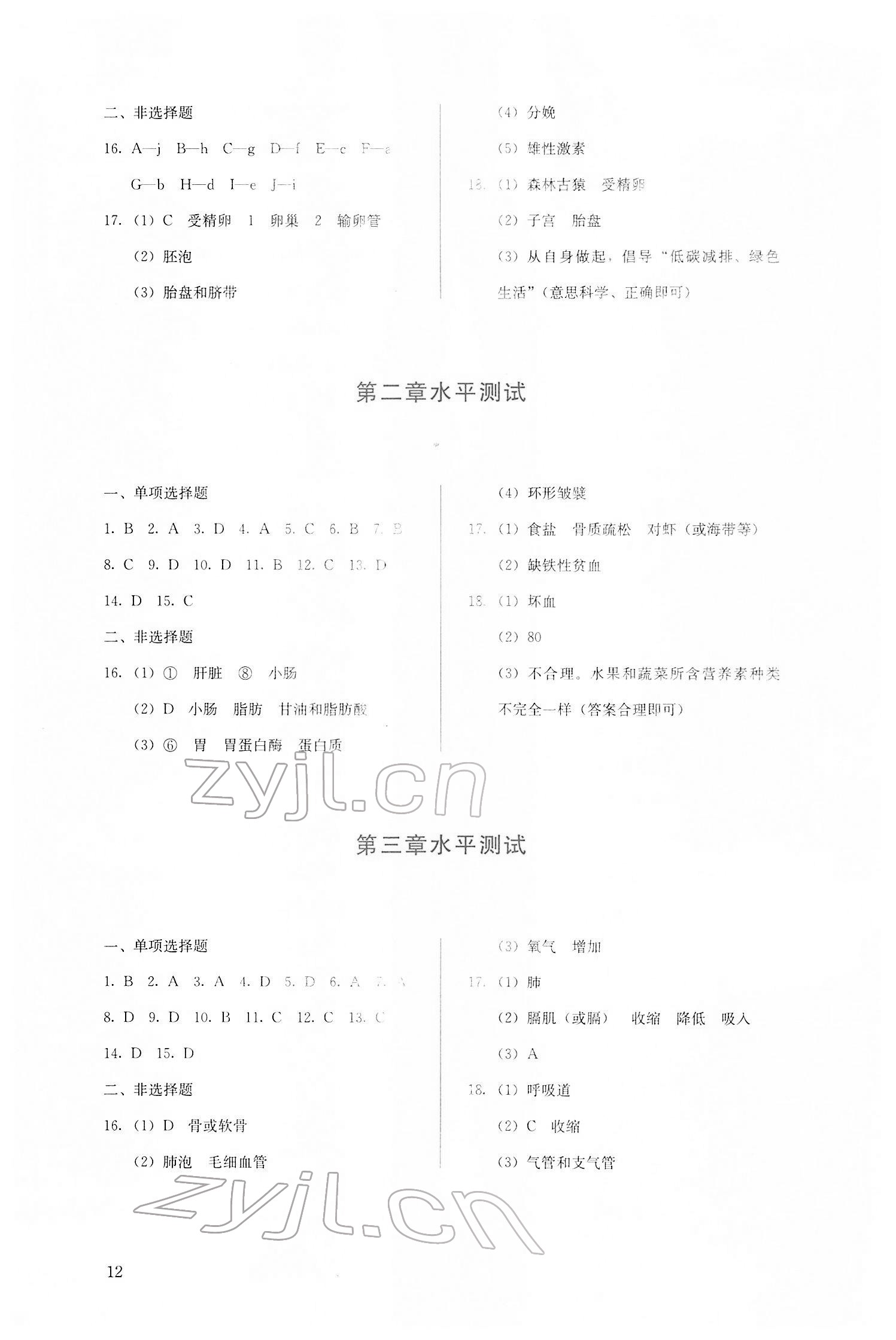 注:目前有些书本章节名称可能整理的还不是很完善,但都是按照顺序排列的,请同学们按照顺序仔细查找。练习册 2022年人教金学典同步解析与测评七年级生物下册人教版山西专版 答案主要是用来给同学们做完题方便对答案用的,请勿直接抄袭。