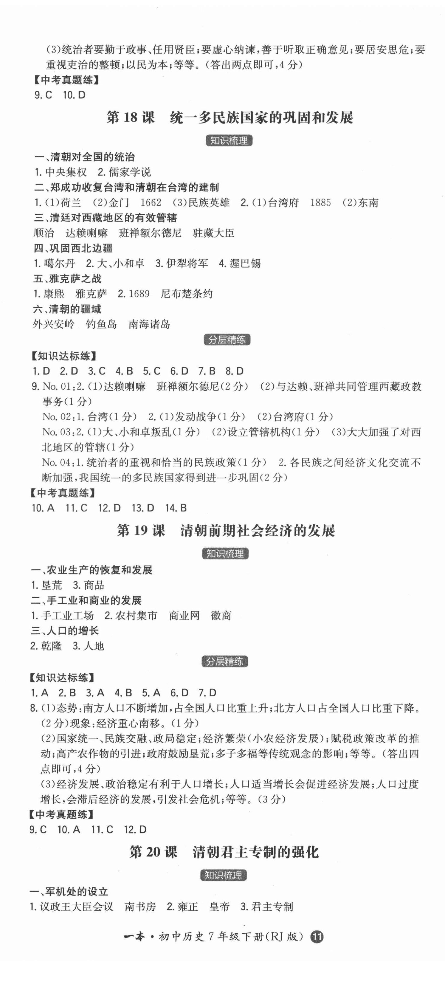 注:目前有些书本章节名称可能整理的还不是很完善,但都是按照顺序排列的,请同学们按照顺序仔细查找。练习册 2022年一本同步训练七年级初中历史下册人教版 答案主要是用来给同学们做完题方便对答案用的,请勿直接抄袭。