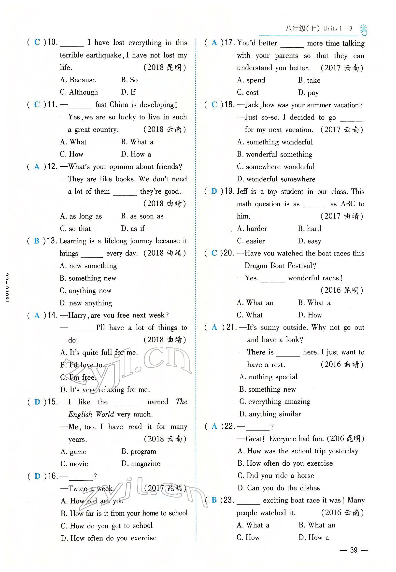 注:目前有些书本章节名称可能整理的还不是很完善,但都是按照顺序排列的,请同学们按照顺序仔细查找。练习册 2022年云南省初中学业水平考试导与练英语云南专版 答案主要是用来给同学们做完题方便对答案用的,请勿直接抄袭。