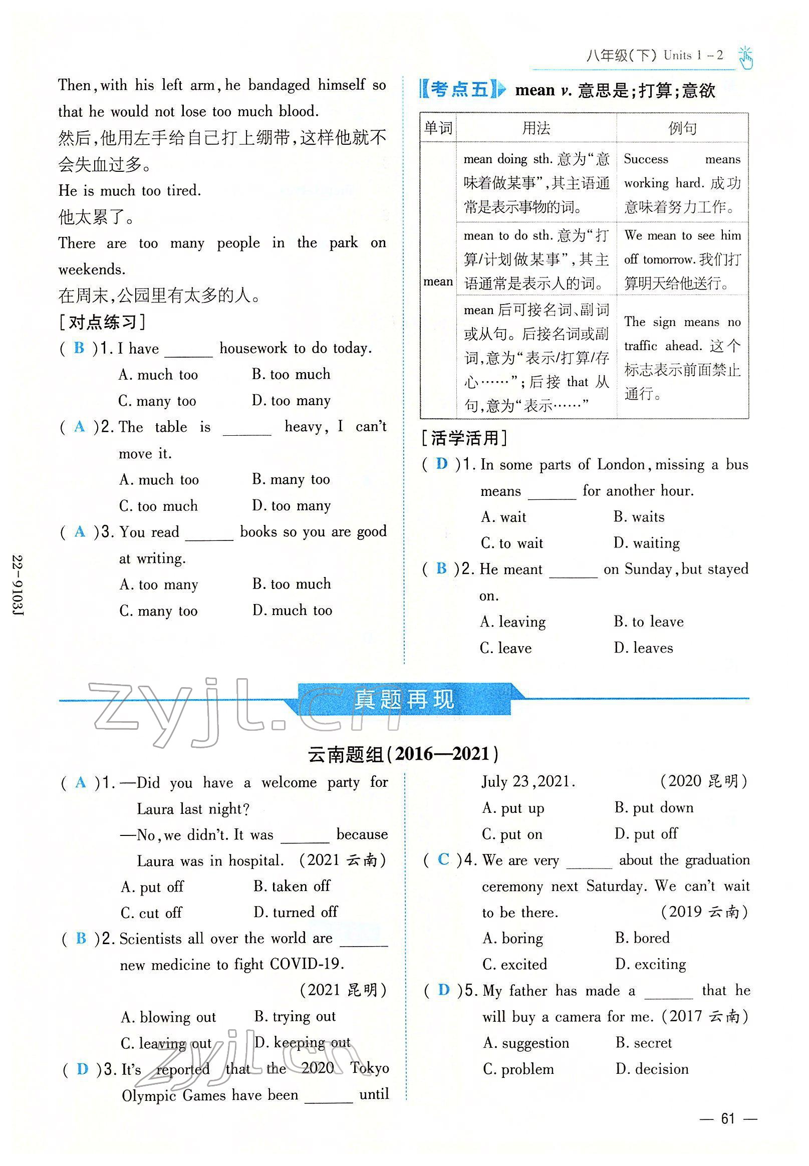 注:目前有些书本章节名称可能整理的还不是很完善,但都是按照顺序排列的,请同学们按照顺序仔细查找。练习册 2022年云南省初中学业水平考试导与练英语云南专版 答案主要是用来给同学们做完题方便对答案用的,请勿直接抄袭。