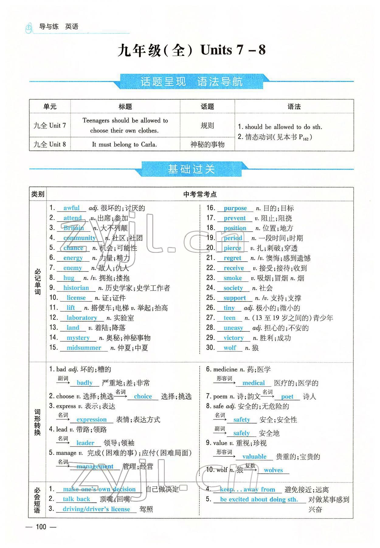 2022年云南省初中学业水平考试导与练英语云南专版