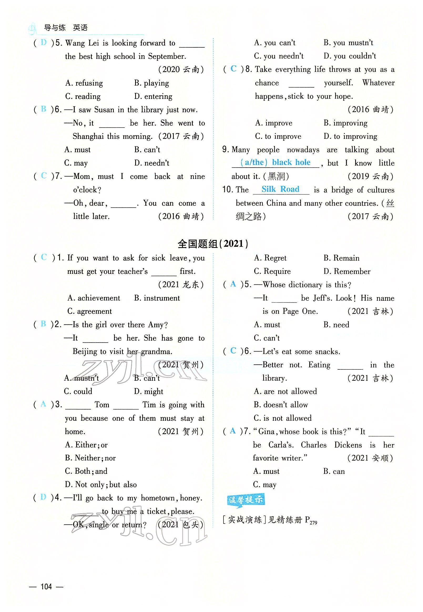 注:目前有些书本章节名称可能整理的还不是很完善,但都是按照顺序排列的,请同学们按照顺序仔细查找。练习册 2022年云南省初中学业水平考试导与练英语云南专版 答案主要是用来给同学们做完题方便对答案用的,请勿直接抄袭。