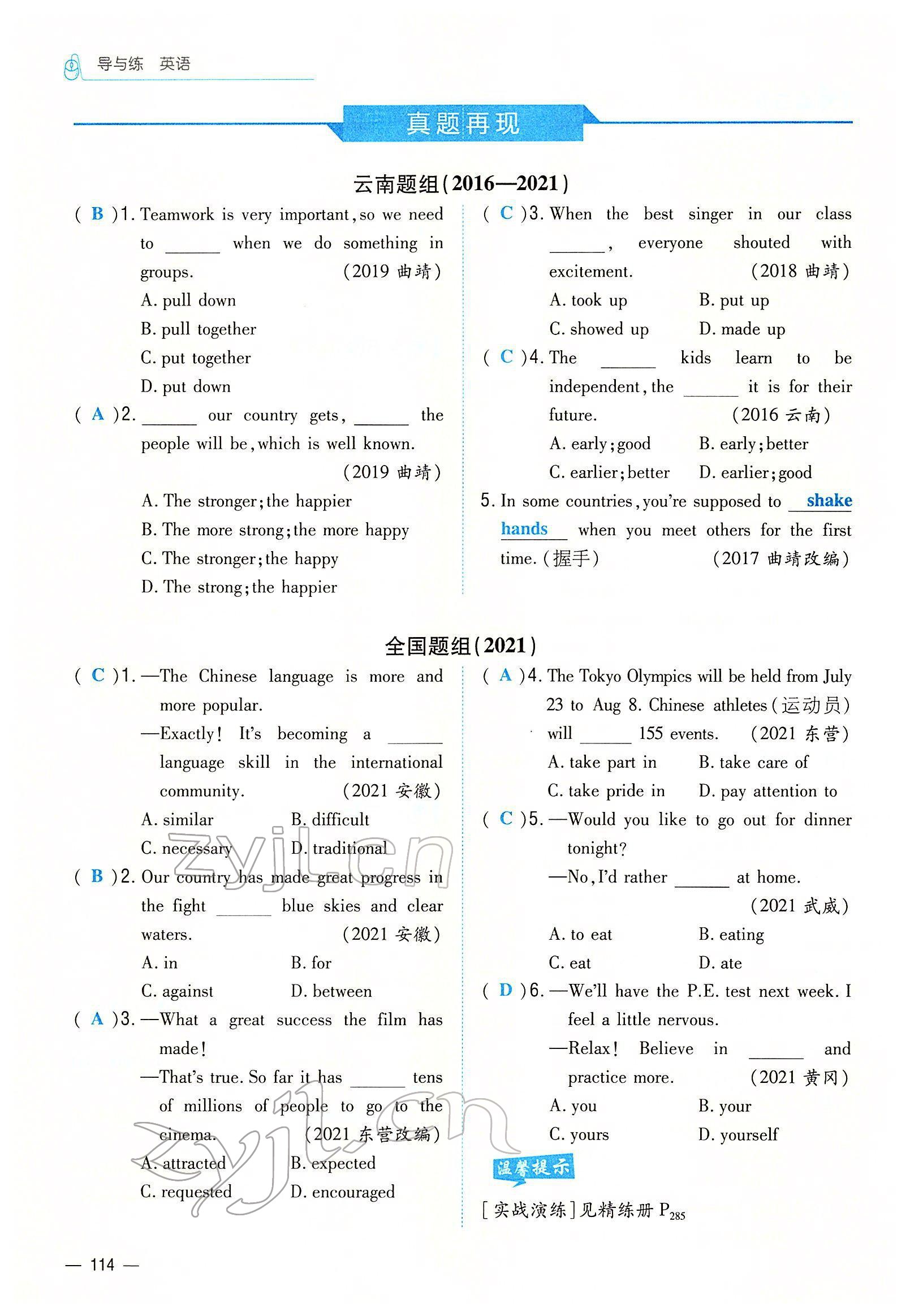 注:目前有些书本章节名称可能整理的还不是很完善,但都是按照顺序排列的,请同学们按照顺序仔细查找。练习册 2022年云南省初中学业水平考试导与练英语云南专版 答案主要是用来给同学们做完题方便对答案用的,请勿直接抄袭。