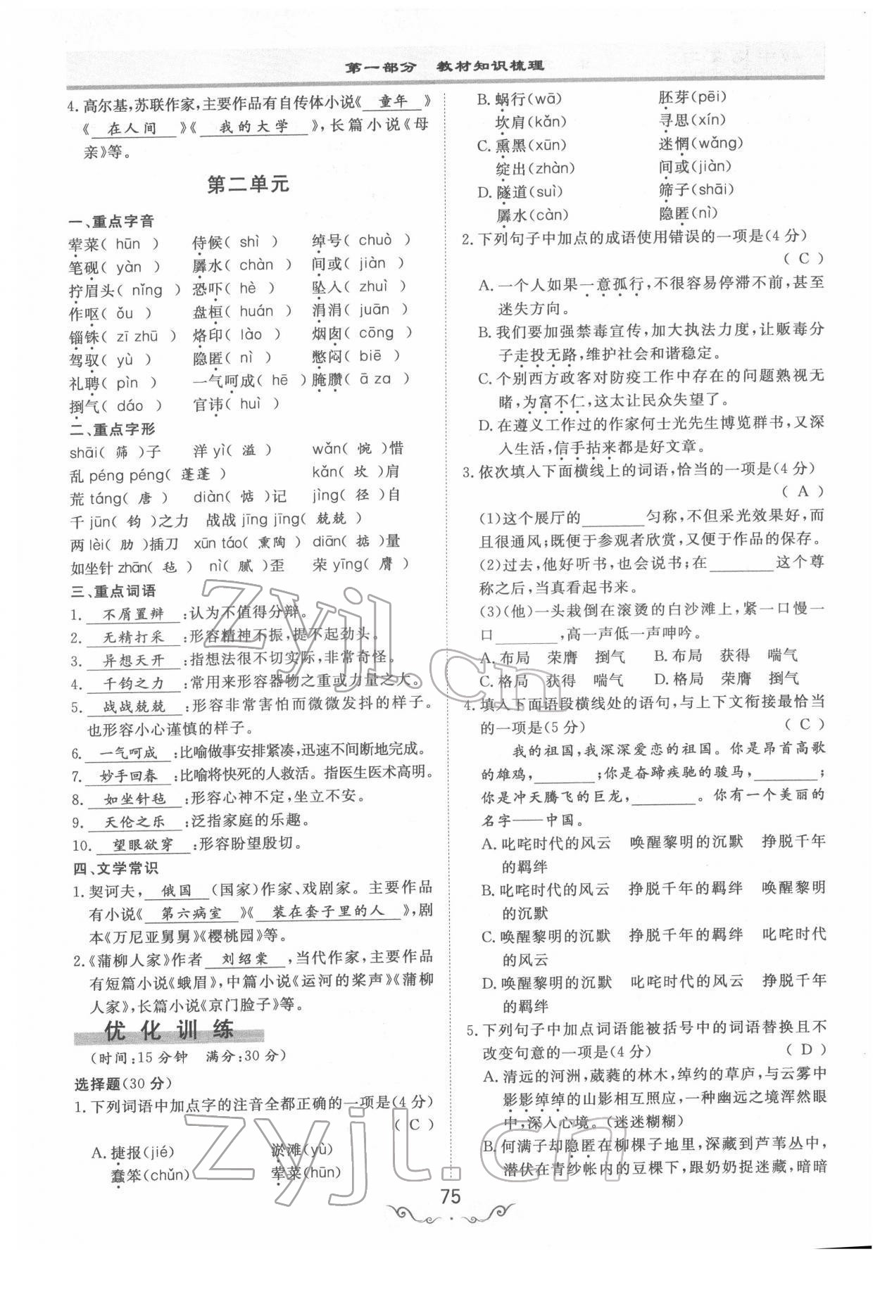 - 参考答案第75页