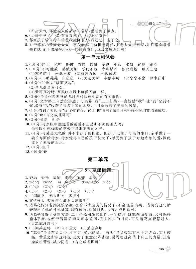 注:目前有些书本章节名称可能整理的还不是很完善,但都是按照顺序排列的,请同学们按照顺序仔细查找。练习册 2022年上海作业五年级语文下册人教版54制 答案主要是用来给同学们做完题方便对答案用的,请勿直接抄袭。