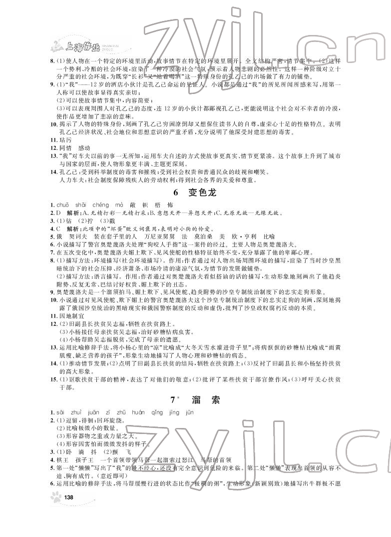 注:目前有些书本章节名称可能整理的还不是很完善,但都是按照顺序排列的,请同学们按照顺序仔细查找。练习册 2022年上海作业九年级语文下册人教版54制 答案主要是用来给同学们做完题方便对答案用的,请勿直接抄袭。