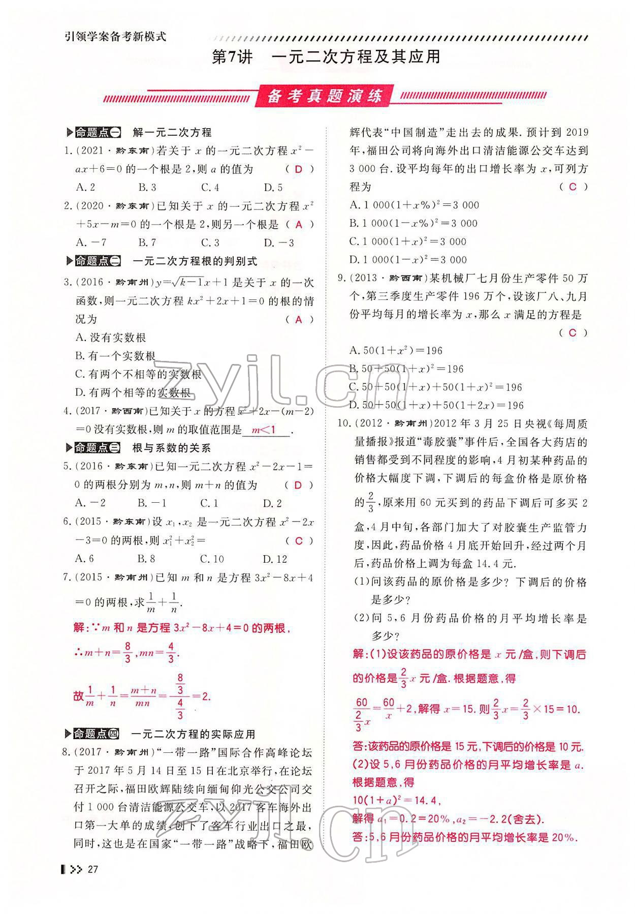 2022年名师学案中考复习堂堂清数学中考黔东南专版