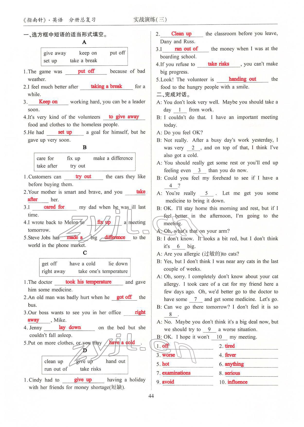 注:目前有些书本章节名称可能整理的还不是很完善,但都是按照顺序排列的,请同学们按照顺序仔细查找。练习册 2022年指南针高分必备英语人教版 答案主要是用来给同学们做完题方便对答案用的,请勿直接抄袭。
