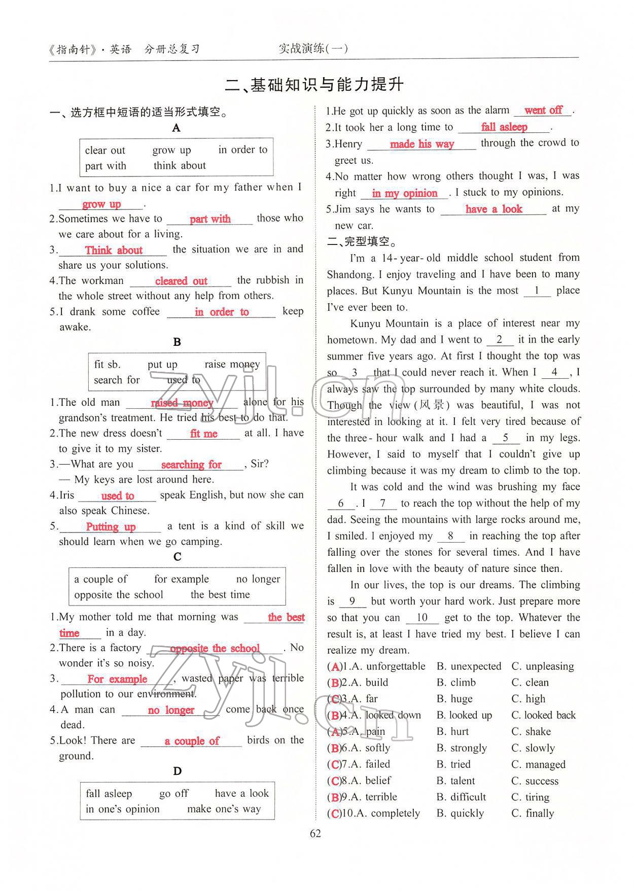 注:目前有些书本章节名称可能整理的还不是很完善,但都是按照顺序排列的,请同学们按照顺序仔细查找。练习册 2022年指南针高分必备英语人教版 答案主要是用来给同学们做完题方便对答案用的,请勿直接抄袭。
