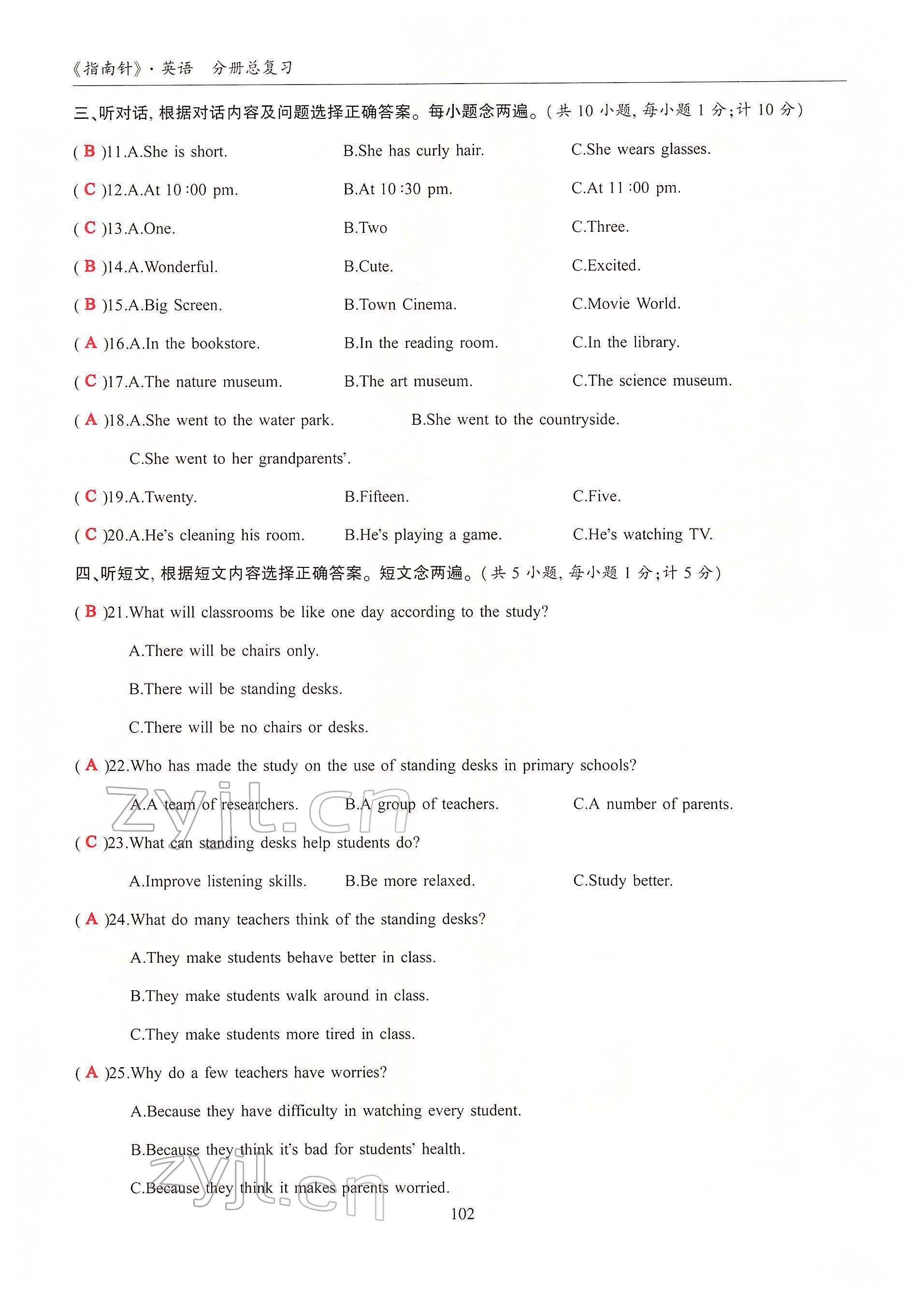 注:目前有些书本章节名称可能整理的还不是很完善,但都是按照顺序排列的,请同学们按照顺序仔细查找。练习册 2022年指南针高分必备英语人教版 答案主要是用来给同学们做完题方便对答案用的,请勿直接抄袭。