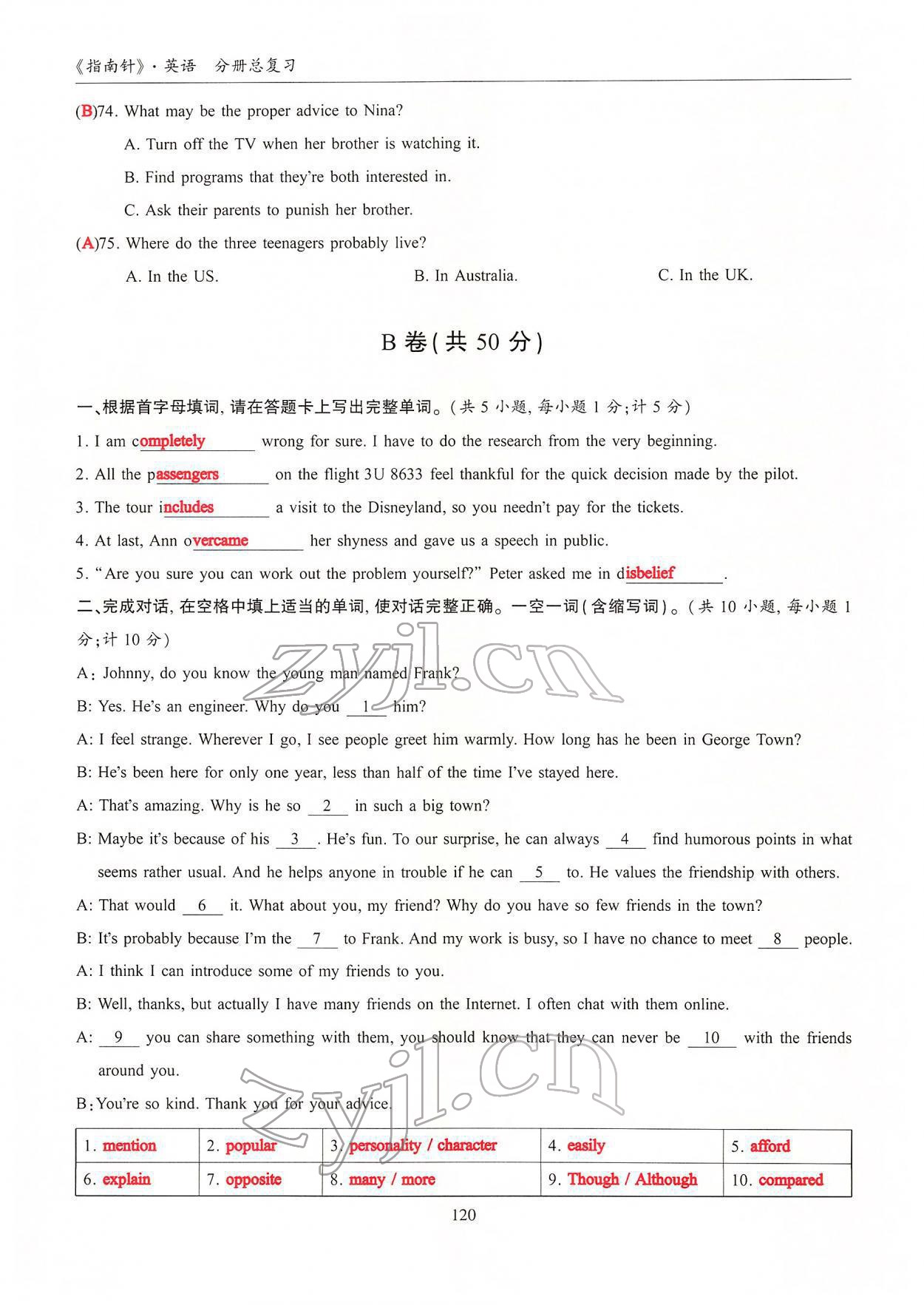 注:目前有些书本章节名称可能整理的还不是很完善,但都是按照顺序排列的,请同学们按照顺序仔细查找。练习册 2022年指南针高分必备英语人教版 答案主要是用来给同学们做完题方便对答案用的,请勿直接抄袭。