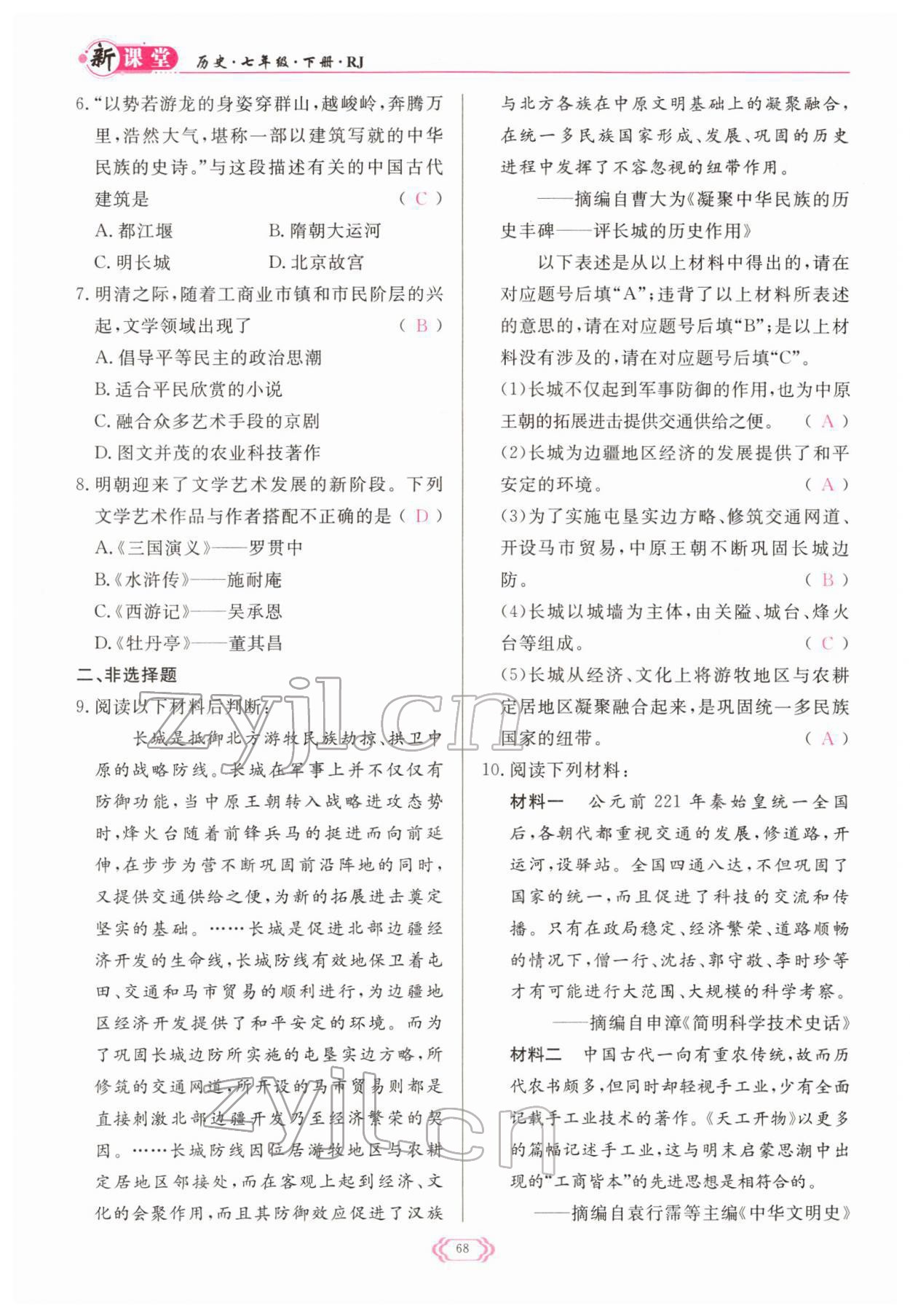 注:目前有些书本章节名称可能整理的还不是很完善,但都是按照顺序排列的,请同学们按照顺序仔细查找。练习册 2022年启航新课堂七年级历史下册人教版 答案主要是用来给同学们做完题方便对答案用的,请勿直接抄袭。