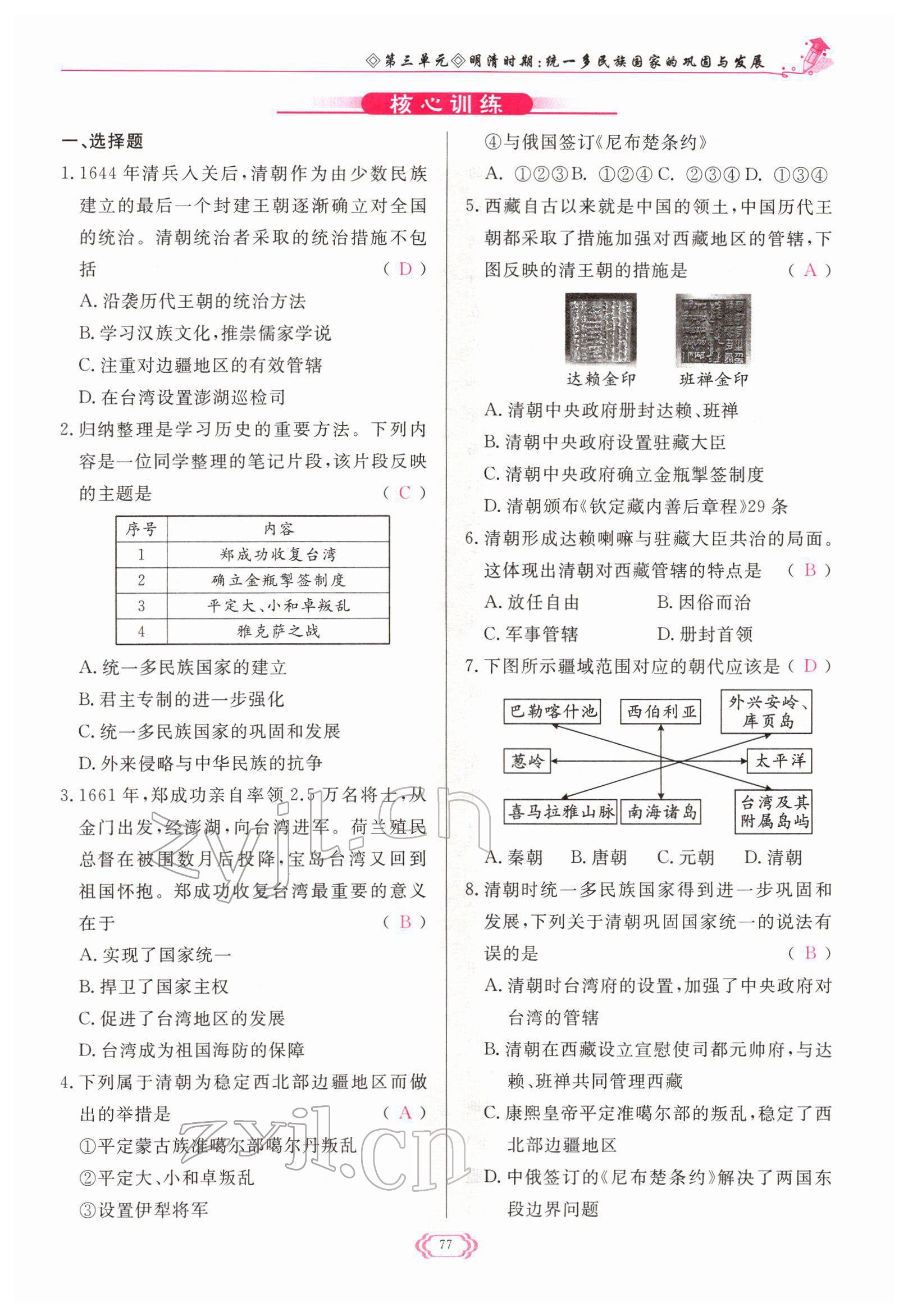 注:目前有些书本章节名称可能整理的还不是很完善,但都是按照顺序排列的,请同学们按照顺序仔细查找。练习册 2022年启航新课堂七年级历史下册人教版 答案主要是用来给同学们做完题方便对答案用的,请勿直接抄袭。