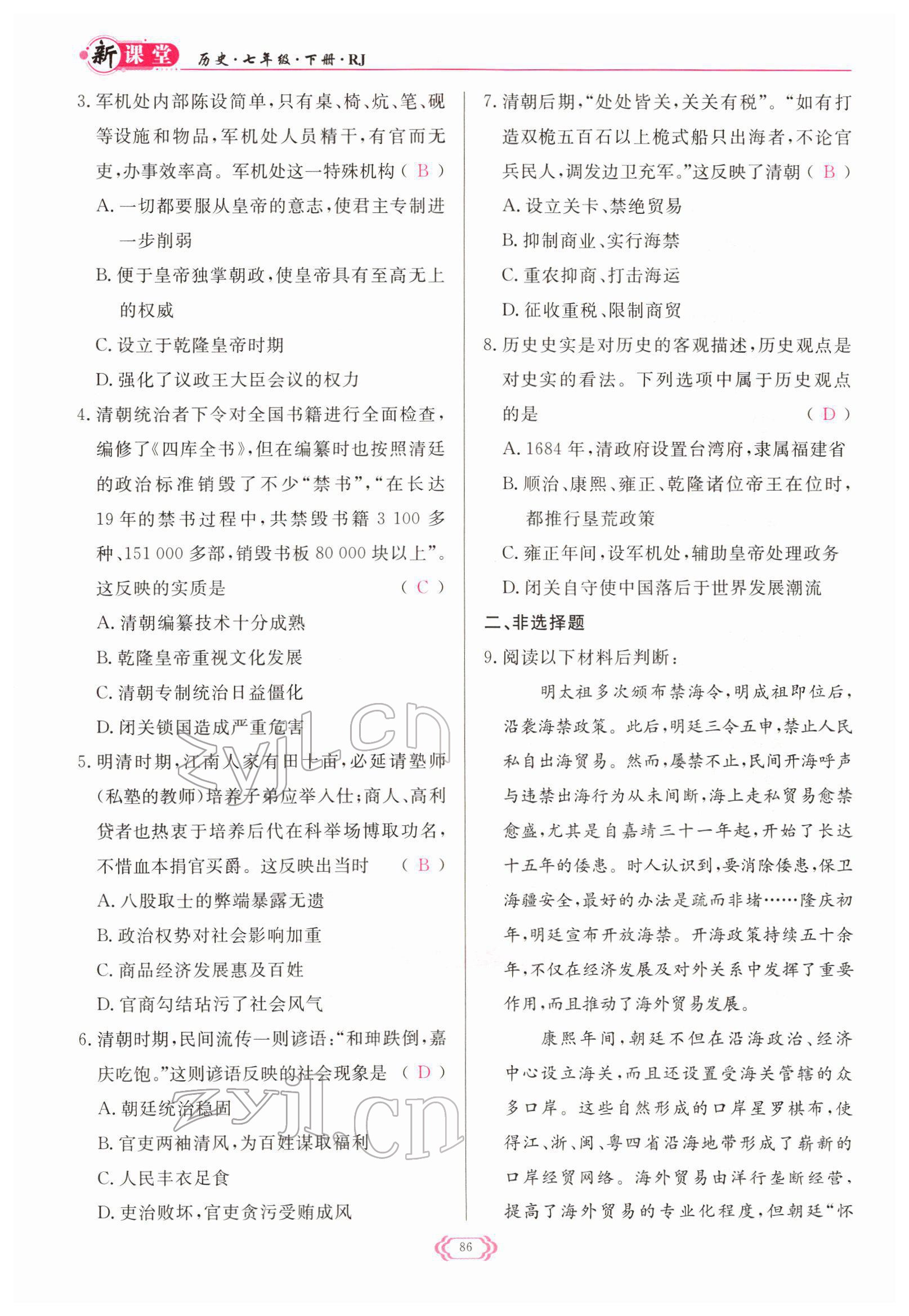注:目前有些书本章节名称可能整理的还不是很完善,但都是按照顺序排列的,请同学们按照顺序仔细查找。练习册 2022年启航新课堂七年级历史下册人教版 答案主要是用来给同学们做完题方便对答案用的,请勿直接抄袭。