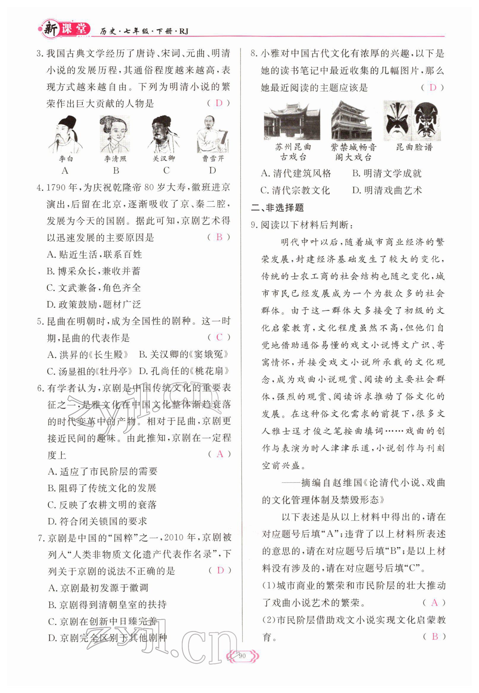 注:目前有些书本章节名称可能整理的还不是很完善,但都是按照顺序排列的,请同学们按照顺序仔细查找。练习册 2022年启航新课堂七年级历史下册人教版 答案主要是用来给同学们做完题方便对答案用的,请勿直接抄袭。