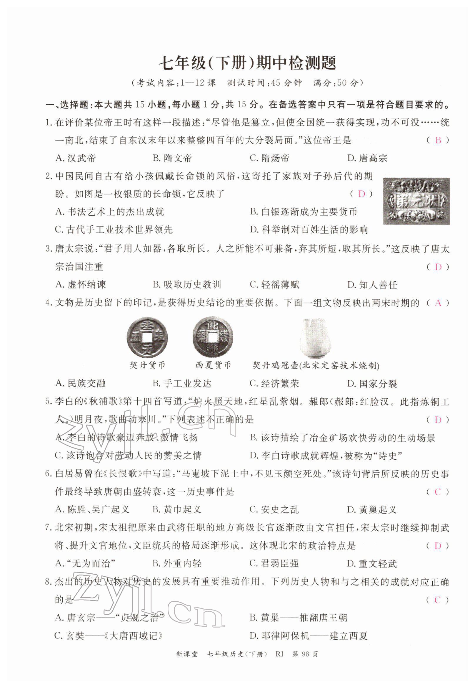 注:目前有些书本章节名称可能整理的还不是很完善,但都是按照顺序排列的,请同学们按照顺序仔细查找。练习册 2022年启航新课堂七年级历史下册人教版 答案主要是用来给同学们做完题方便对答案用的,请勿直接抄袭。