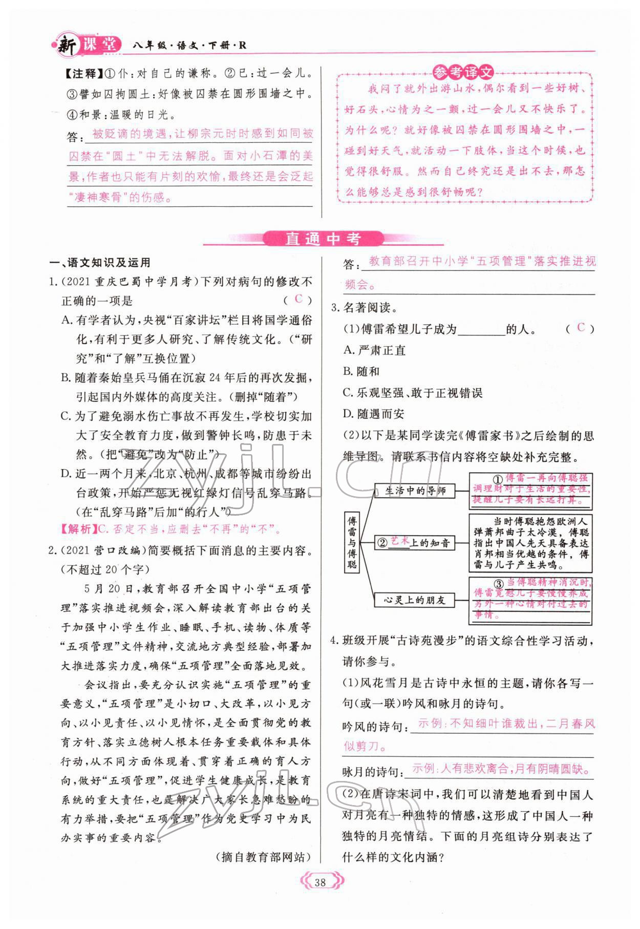 注:目前有些书本章节名称可能整理的还不是很完善,但都是按照顺序排列的,请同学们按照顺序仔细查找。练习册 2022年启航新课堂八年级语文下册人教版 答案主要是用来给同学们做完题方便对答案用的,请勿直接抄袭。