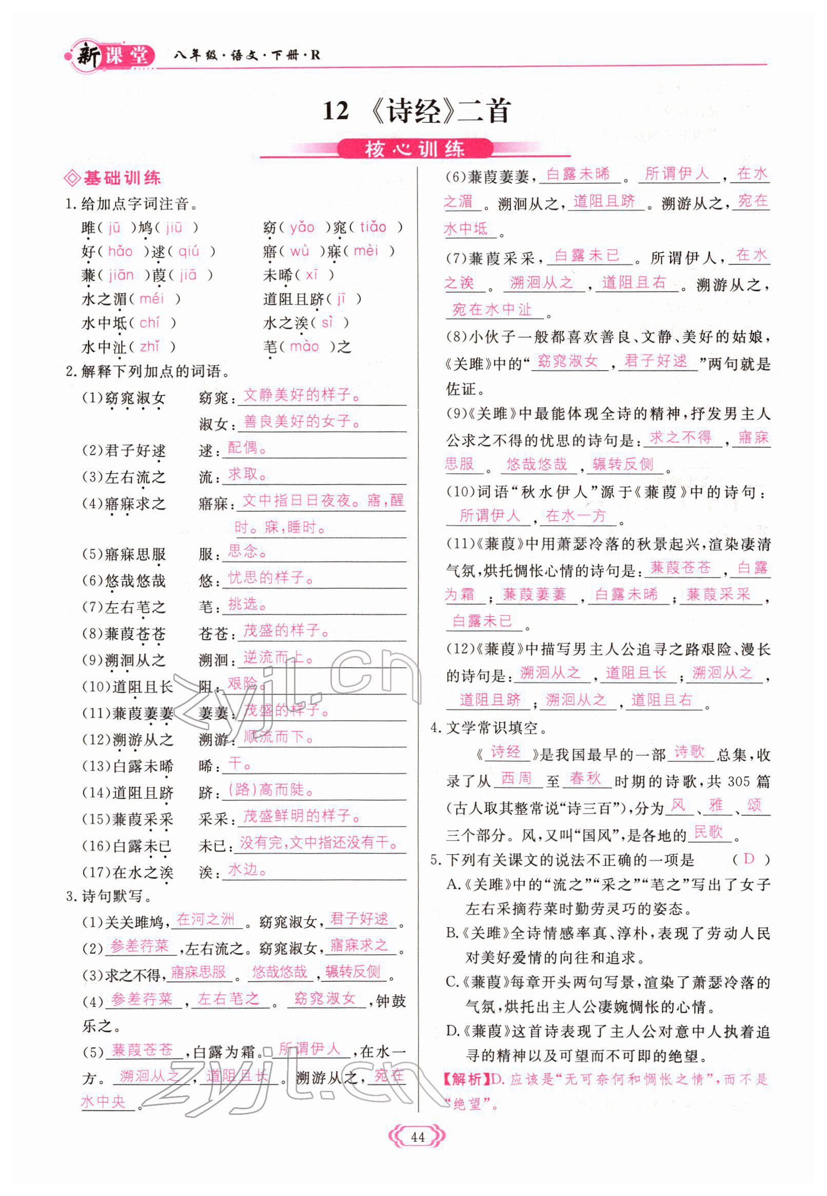 注:目前有些书本章节名称可能整理的还不是很完善,但都是按照顺序排列的,请同学们按照顺序仔细查找。练习册 2022年启航新课堂八年级语文下册人教版 答案主要是用来给同学们做完题方便对答案用的,请勿直接抄袭。