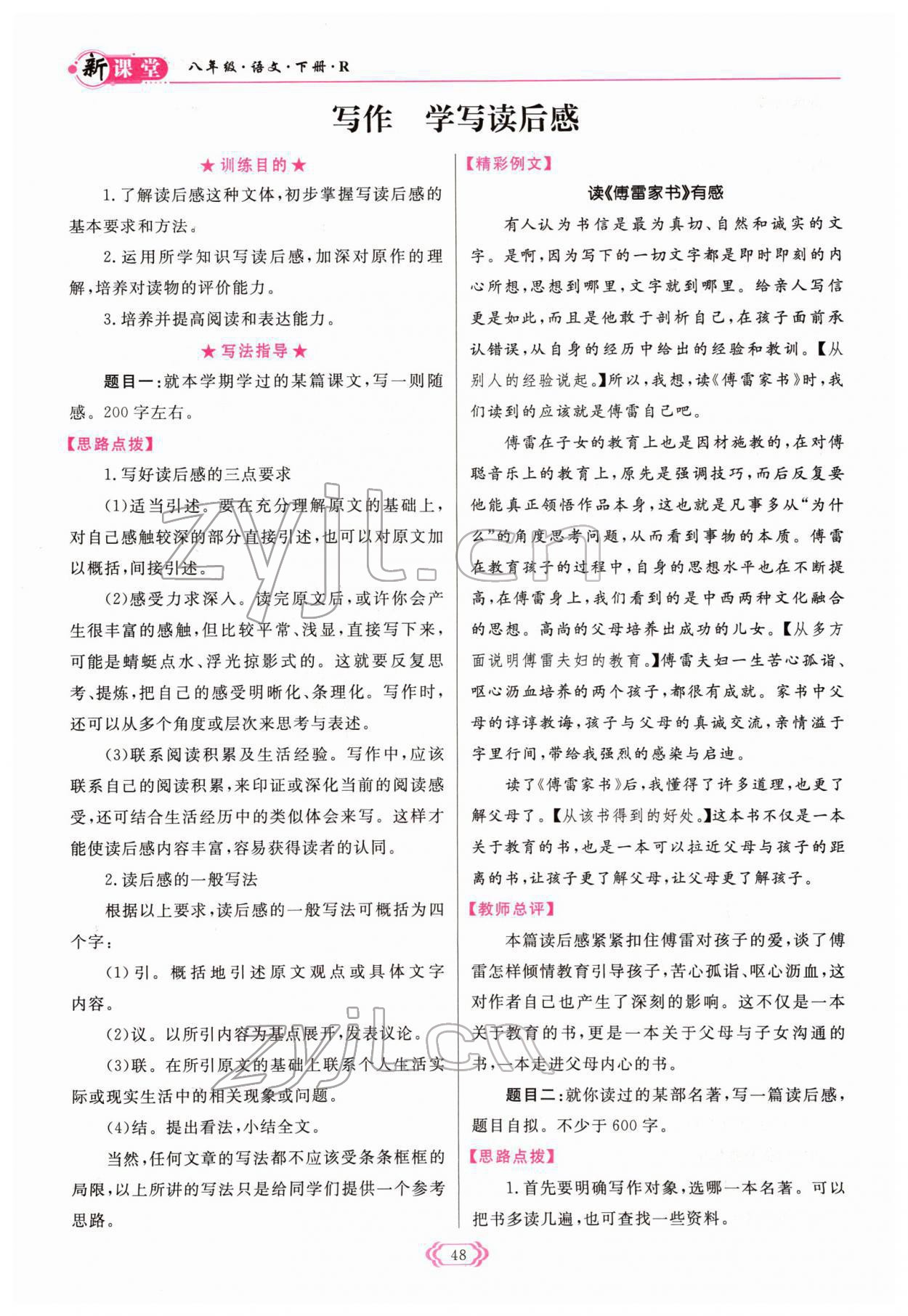 注:目前有些书本章节名称可能整理的还不是很完善,但都是按照顺序排列的,请同学们按照顺序仔细查找。练习册 2022年启航新课堂八年级语文下册人教版 答案主要是用来给同学们做完题方便对答案用的,请勿直接抄袭。