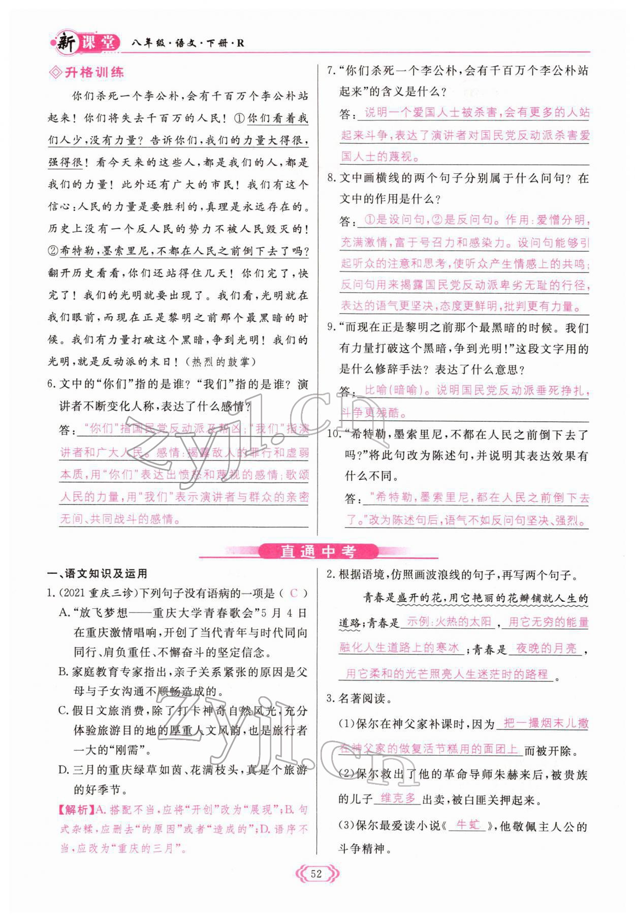 注:目前有些书本章节名称可能整理的还不是很完善,但都是按照顺序排列的,请同学们按照顺序仔细查找。练习册 2022年启航新课堂八年级语文下册人教版 答案主要是用来给同学们做完题方便对答案用的,请勿直接抄袭。