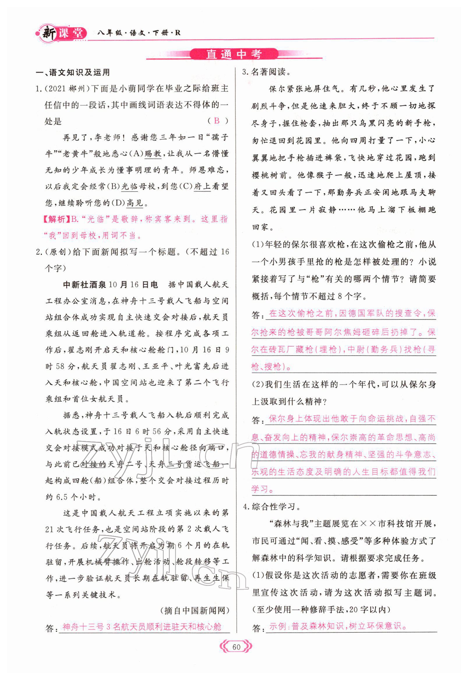 注:目前有些书本章节名称可能整理的还不是很完善,但都是按照顺序排列的,请同学们按照顺序仔细查找。练习册 2022年启航新课堂八年级语文下册人教版 答案主要是用来给同学们做完题方便对答案用的,请勿直接抄袭。