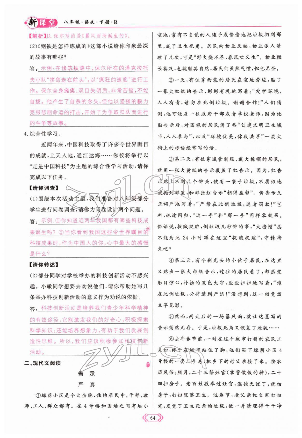 注:目前有些书本章节名称可能整理的还不是很完善,但都是按照顺序排列的,请同学们按照顺序仔细查找。练习册 2022年启航新课堂八年级语文下册人教版 答案主要是用来给同学们做完题方便对答案用的,请勿直接抄袭。