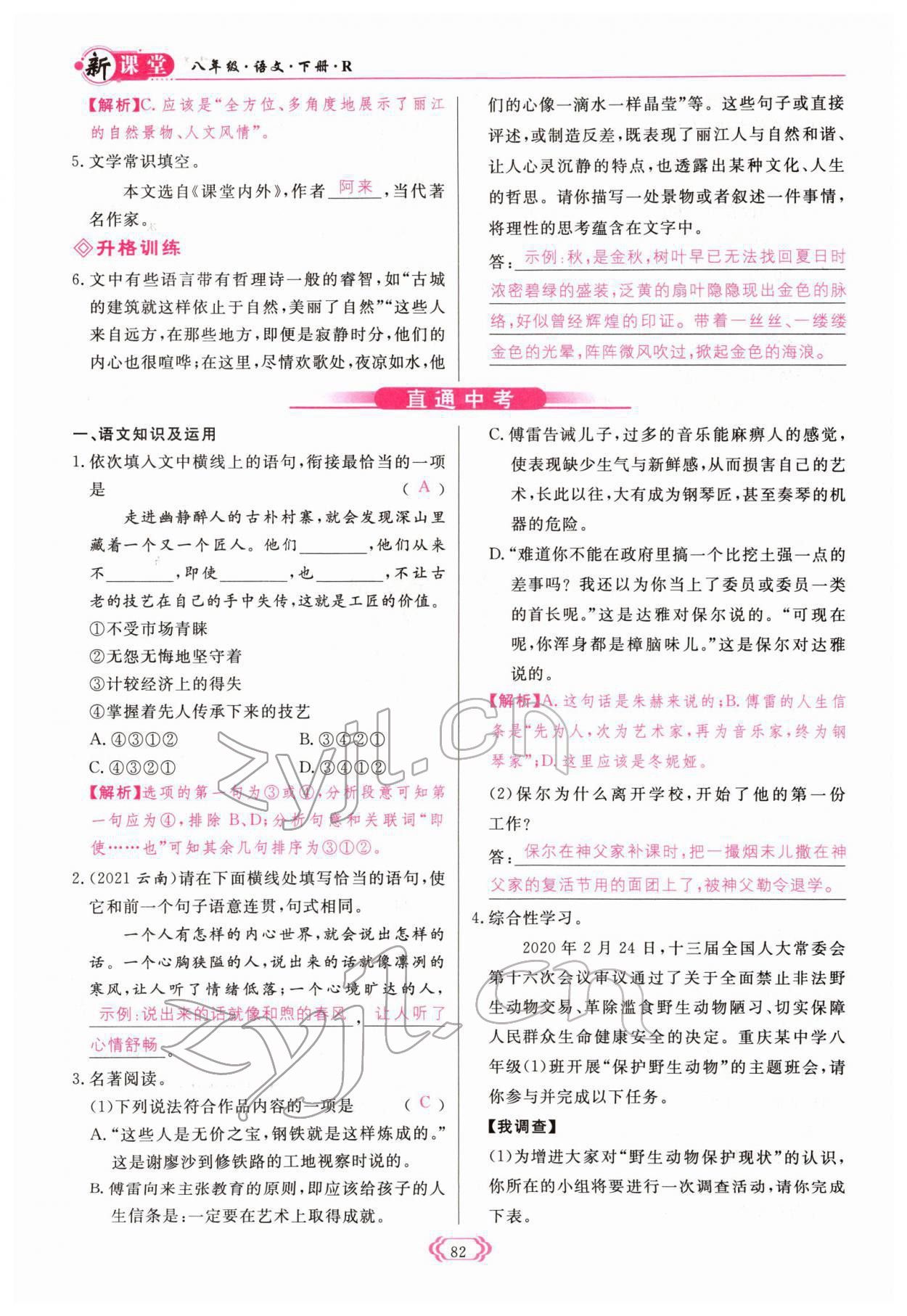 注:目前有些书本章节名称可能整理的还不是很完善,但都是按照顺序排列的,请同学们按照顺序仔细查找。练习册 2022年启航新课堂八年级语文下册人教版 答案主要是用来给同学们做完题方便对答案用的,请勿直接抄袭。