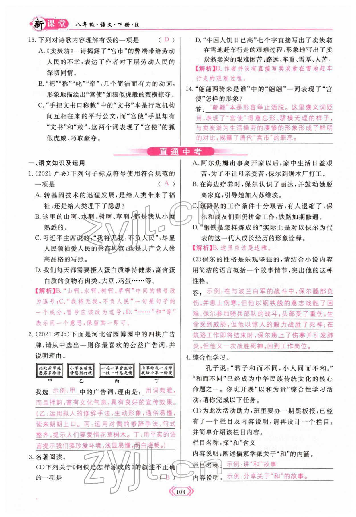 注:目前有些书本章节名称可能整理的还不是很完善,但都是按照顺序排列的,请同学们按照顺序仔细查找。练习册 2022年启航新课堂八年级语文下册人教版 答案主要是用来给同学们做完题方便对答案用的,请勿直接抄袭。