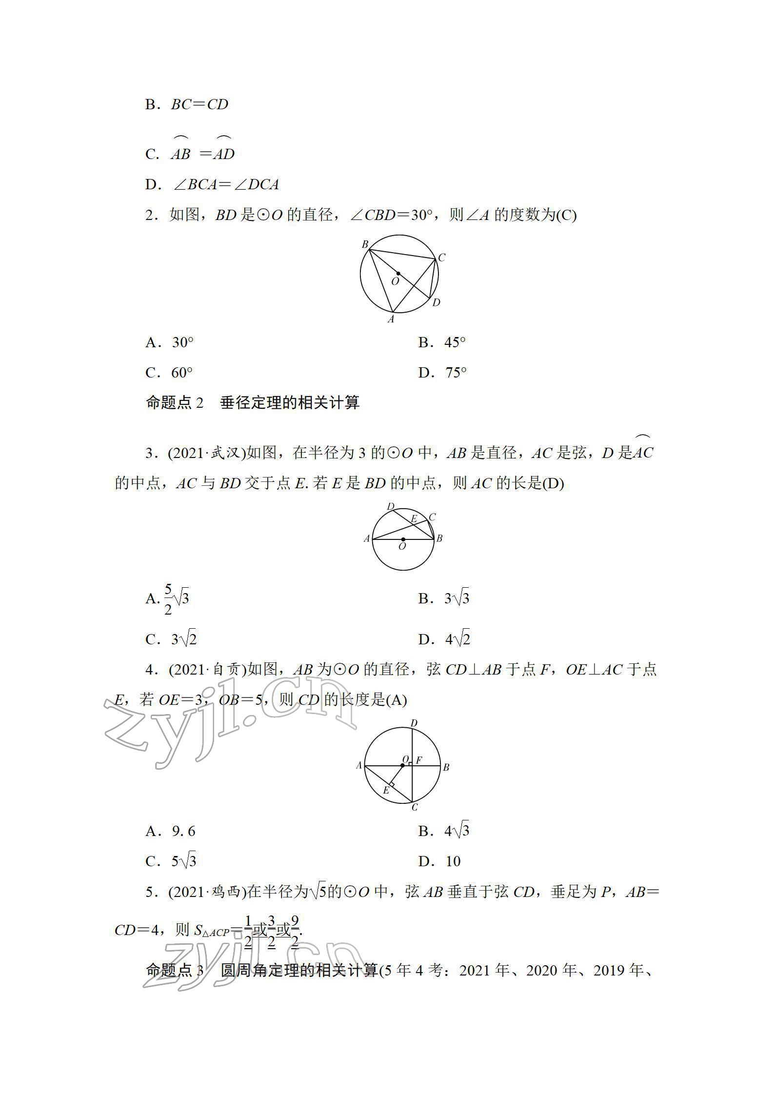 《2022年中考复习指南长江少年儿童出版社数学人教版宜昌专版》
