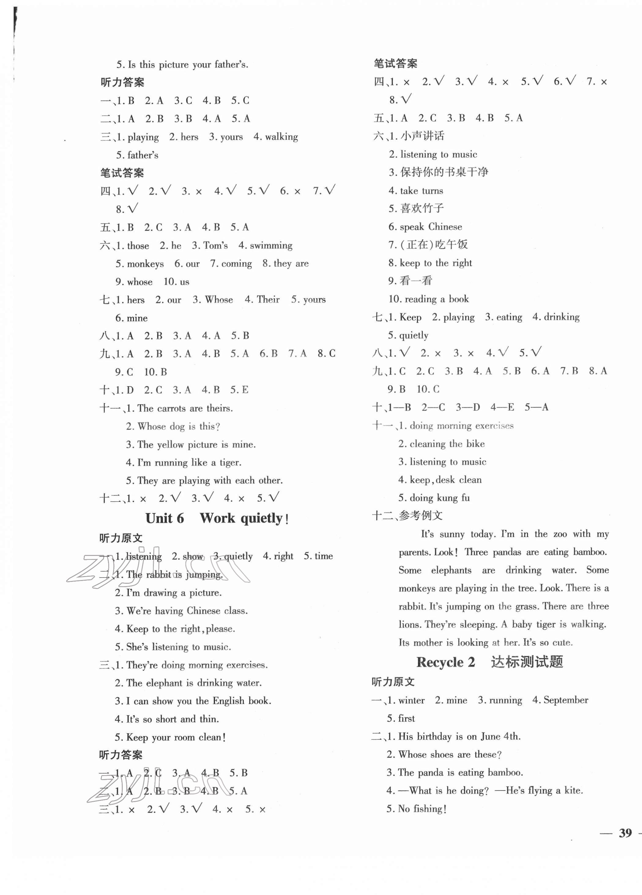 注:目前有些书本章节名称可能整理的还不是很完善,但都是按照顺序排列的,请同学们按照顺序仔细查找。练习册 2022年黄冈360度定制密卷五年级英语下册人教PEP版湖南专版 答案主要是用来给同学们做完题方便对答案用的,请勿直接抄袭。