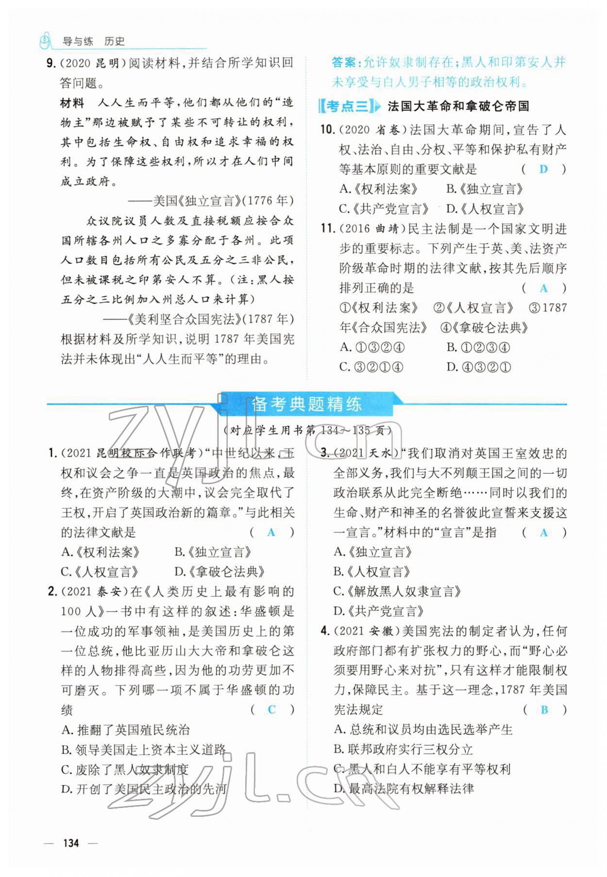 注:目前有些书本章节名称可能整理的还不是很完善,但都是按照顺序排列的,请同学们按照顺序仔细查找。练习册 2022年云南省初中学业水平考试导与练历史云南专版 答案主要是用来给同学们做完题方便对答案用的,请勿直接抄袭。