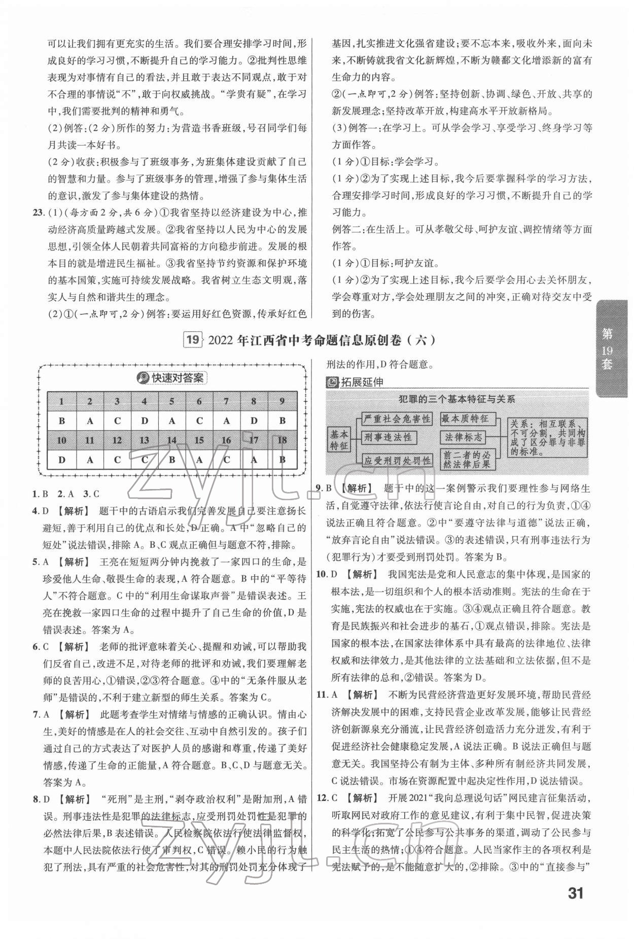 2022年金考卷江西中考45套汇编道德与法治人教版