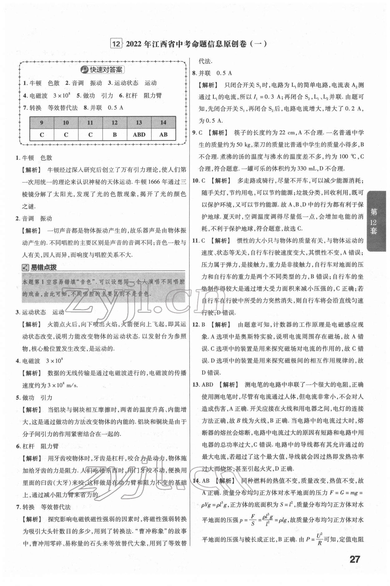 注:目前有些书本章节名称可能整理的还不是很完善,但都是按照顺序排列的,请同学们按照顺序仔细查找。练习册 2022年金考卷江西中考45套汇编物理人教版 答案主要是用来给同学们做完题方便对答案用的,请勿直接抄袭。