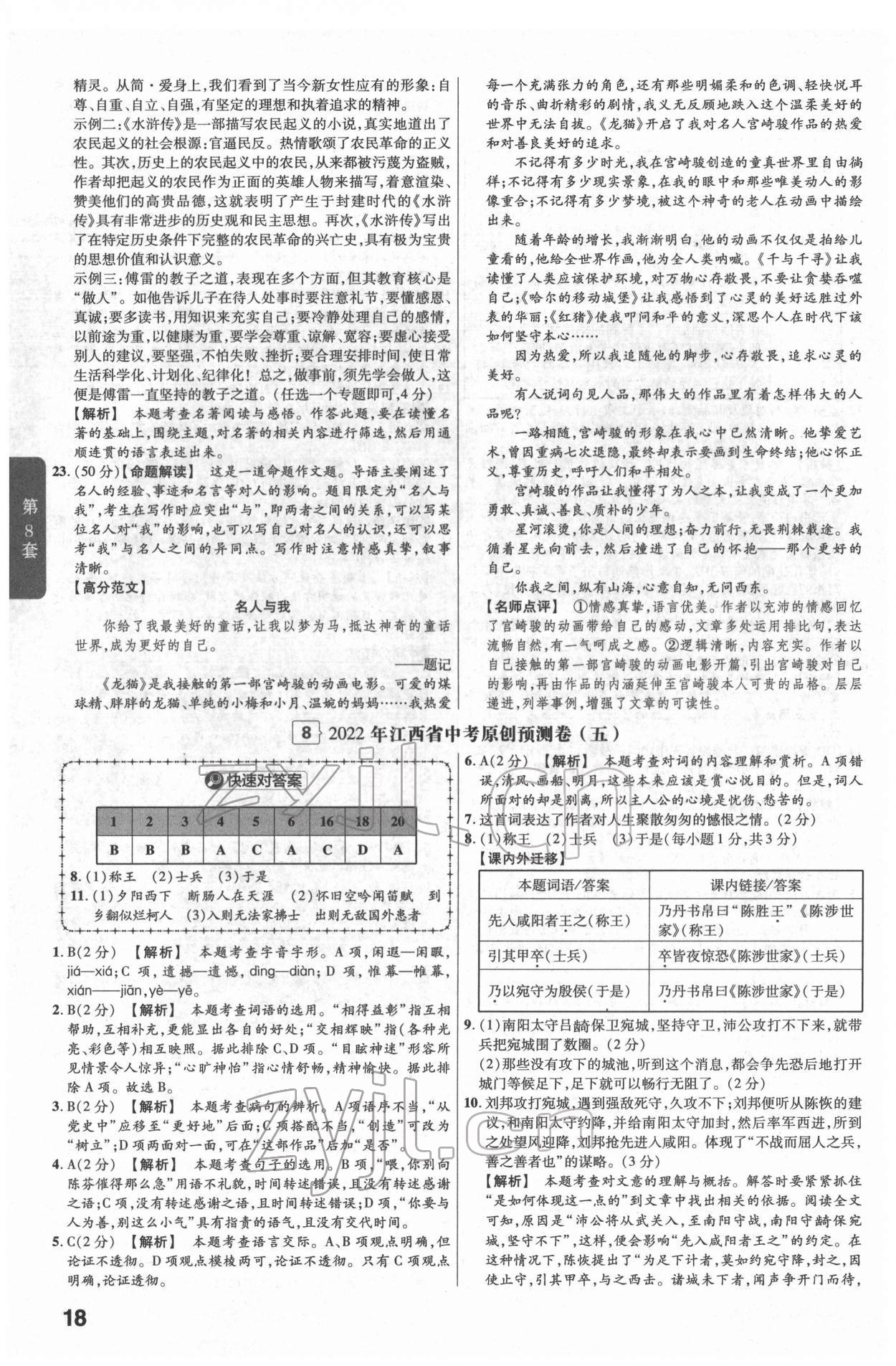 注:目前有些书本章节名称可能整理的还不是很完善,但都是按照顺序排列的,请同学们按照顺序仔细查找。练习册 2022年金考卷江西中考45套汇编语文人教版 答案主要是用来给同学们做完题方便对答案用的,请勿直接抄袭。
