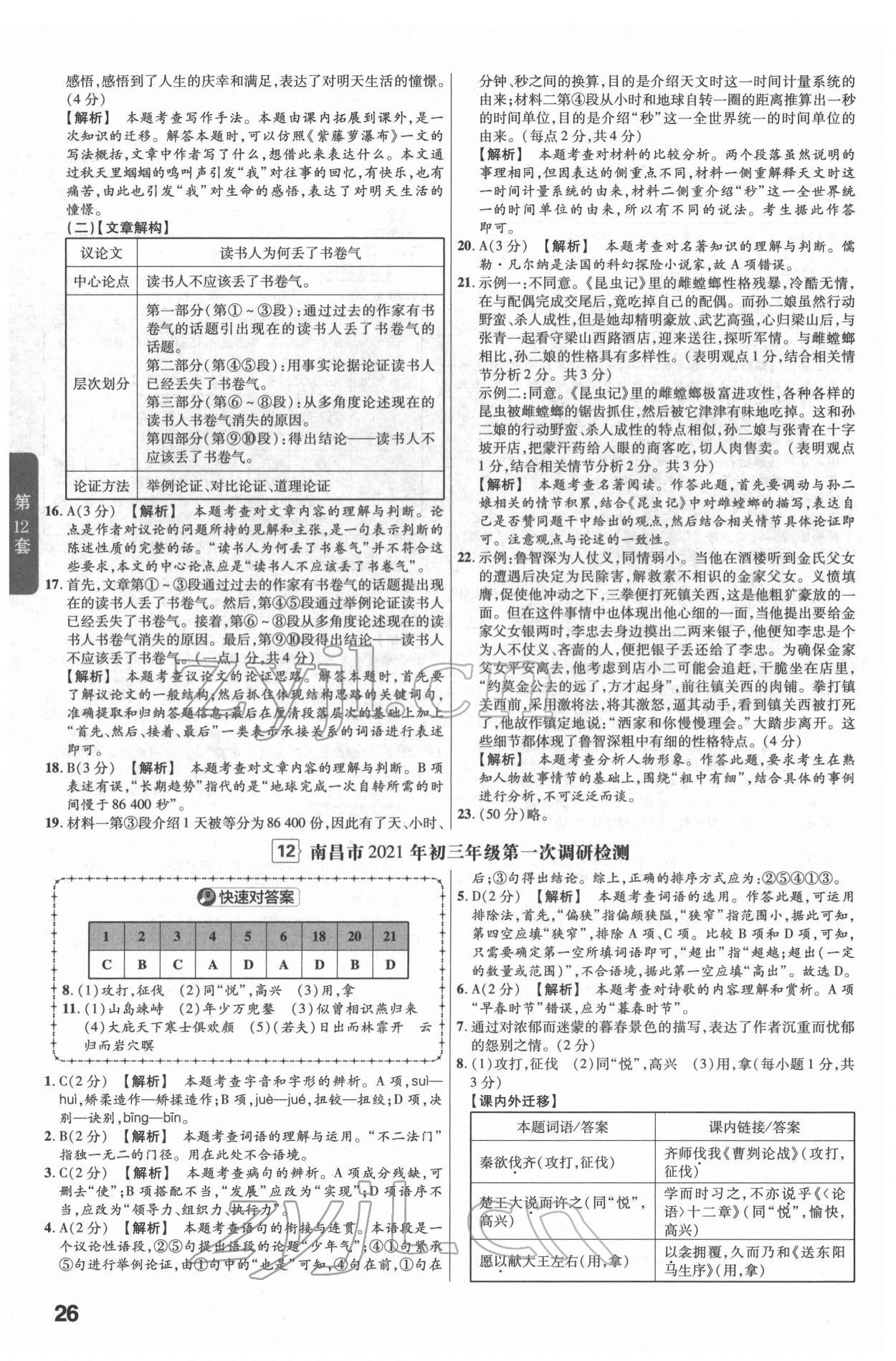 注:目前有些书本章节名称可能整理的还不是很完善,但都是按照顺序排列的,请同学们按照顺序仔细查找。练习册 2022年金考卷江西中考45套汇编语文人教版 答案主要是用来给同学们做完题方便对答案用的,请勿直接抄袭。