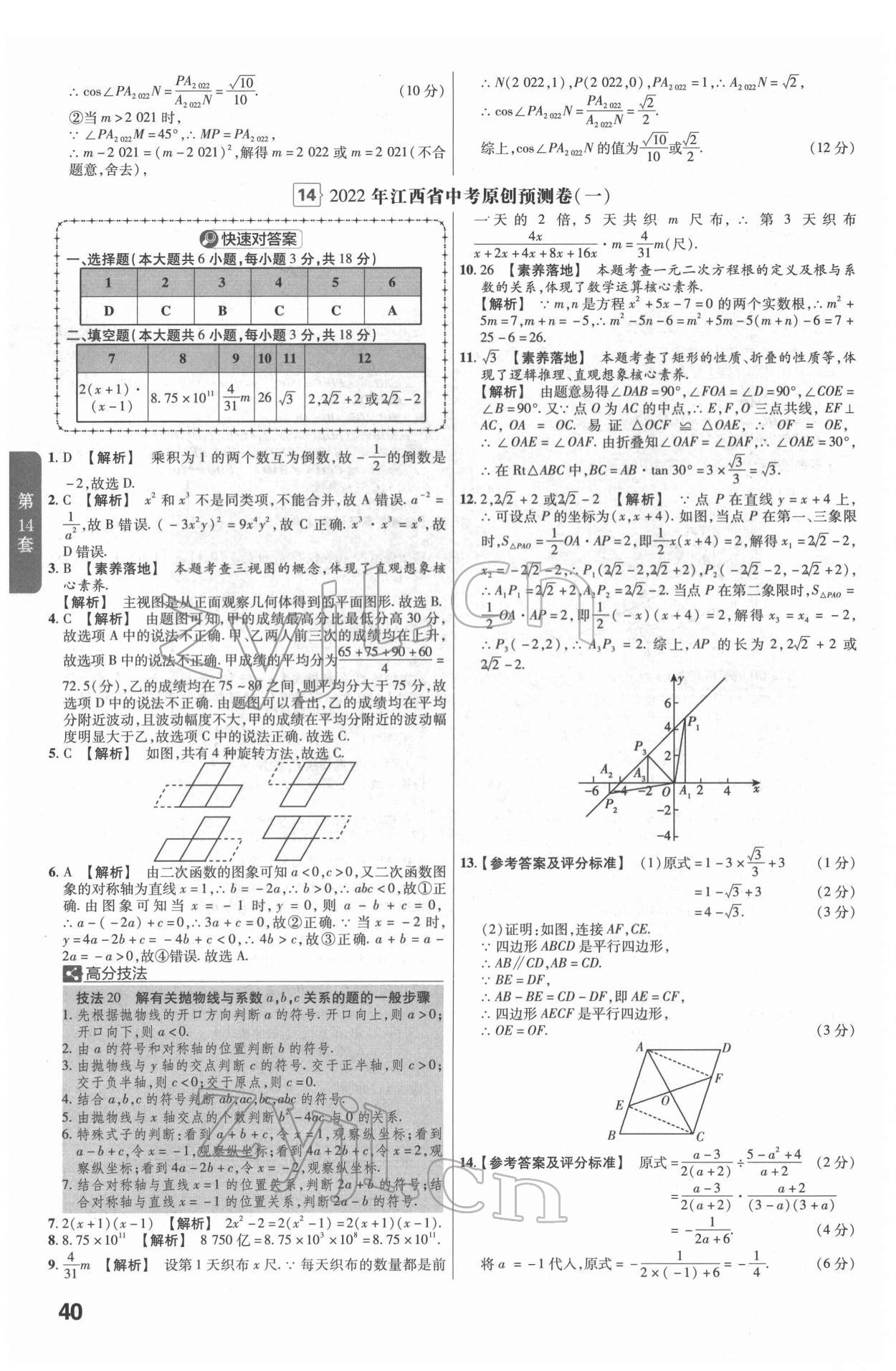 2022年金考卷江西中考45套汇编数学人教版