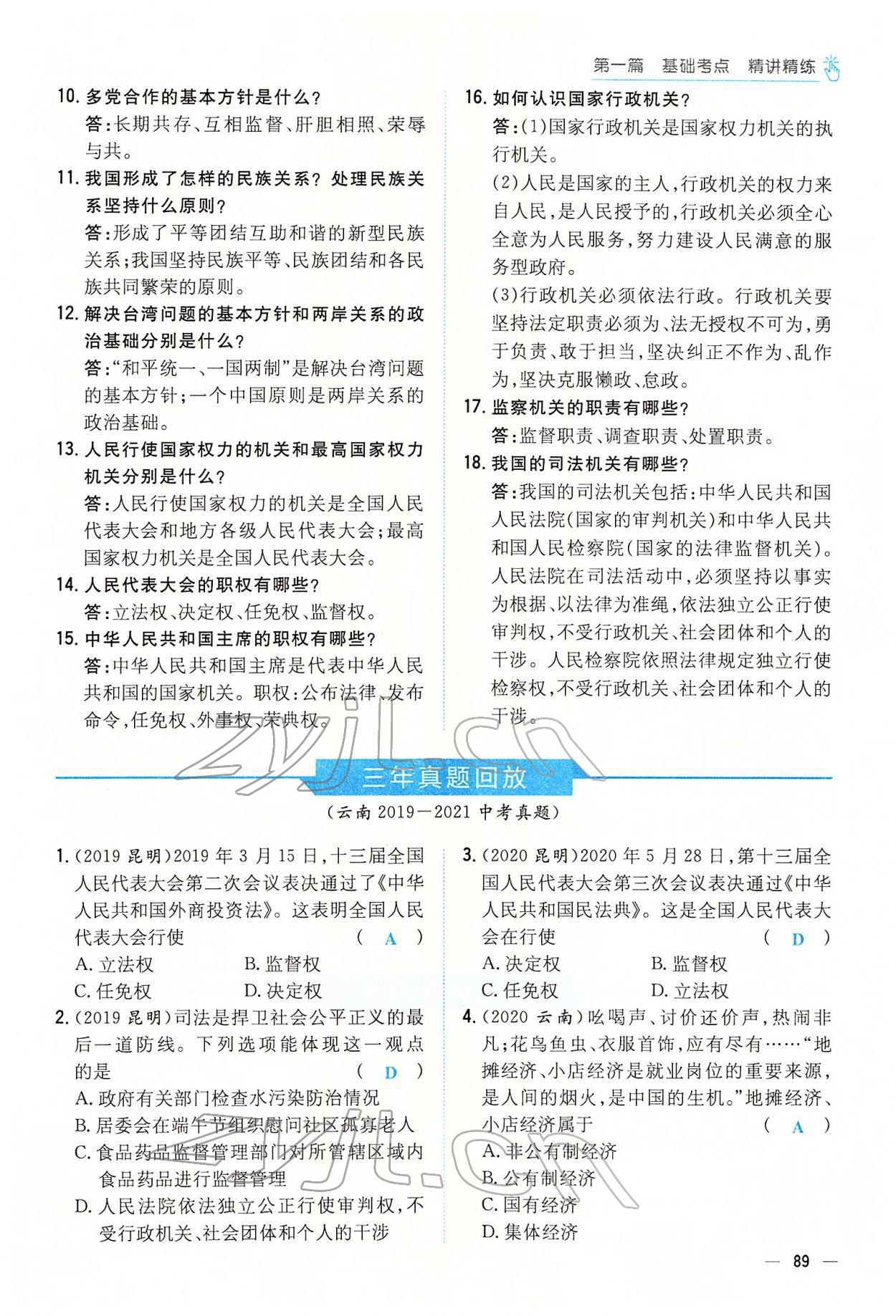 2022年云南省初中学业水平考试导与练道德与法治云南专版