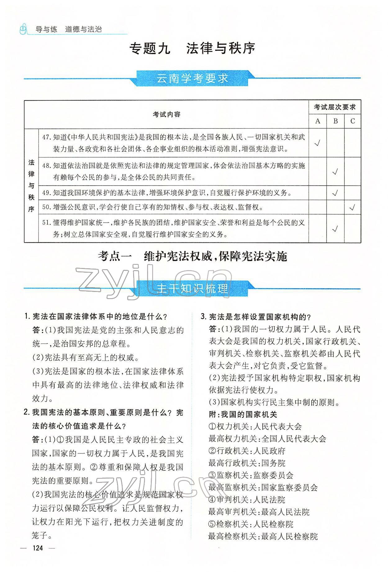注:目前有些书本章节名称可能整理的还不是很完善,但都是按照顺序排列的,请同学们按照顺序仔细查找。练习册 2022年云南省初中学业水平考试导与练道德与法治云南专版 答案主要是用来给同学们做完题方便对答案用的,请勿直接抄袭。