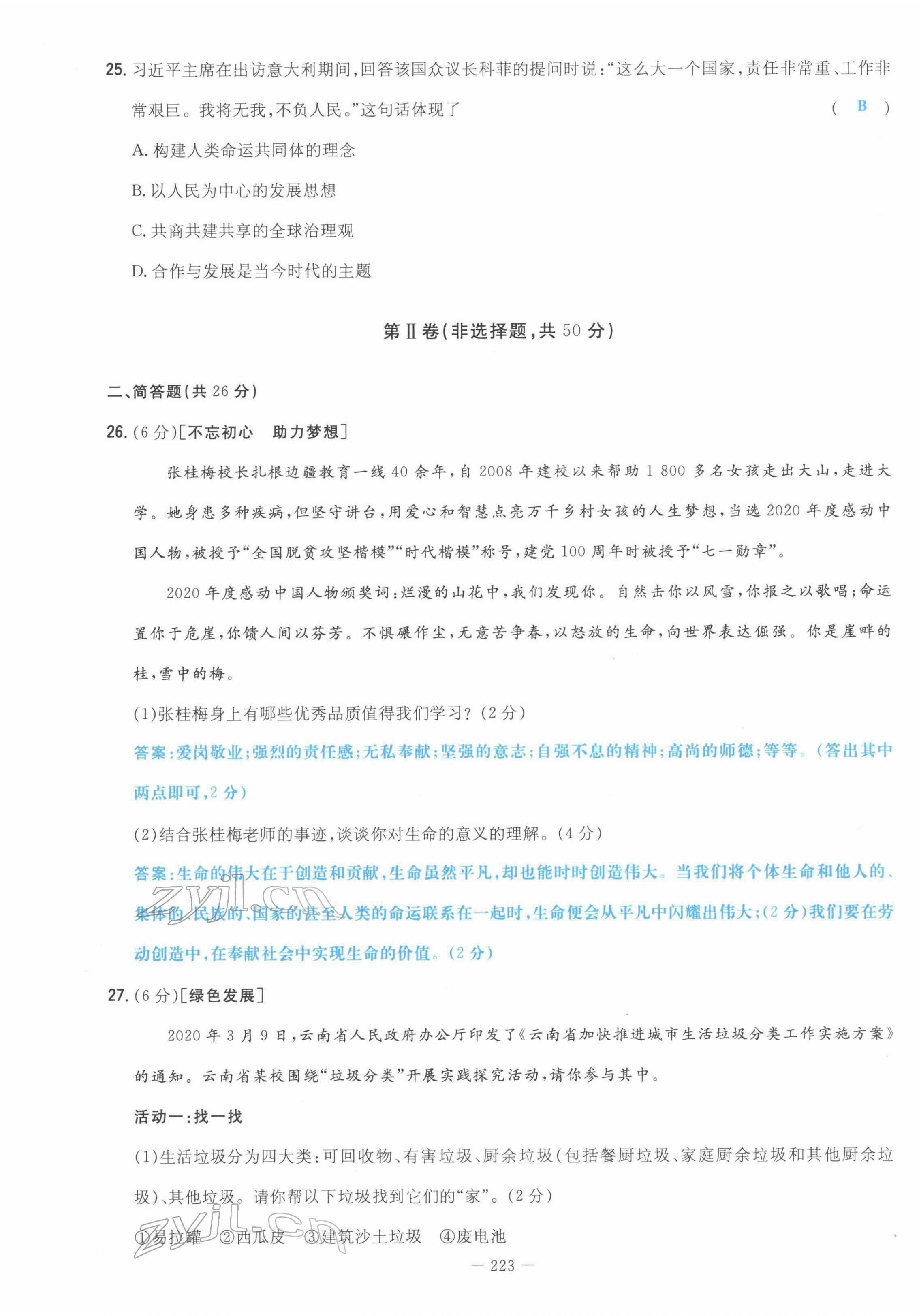 2022年云南省初中学业水平考试导与练道德与法治云南专版